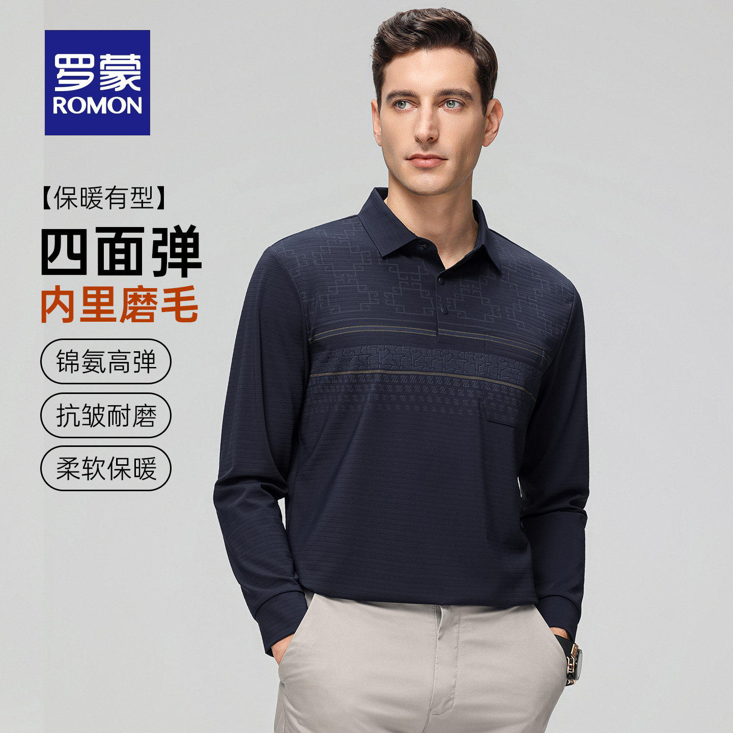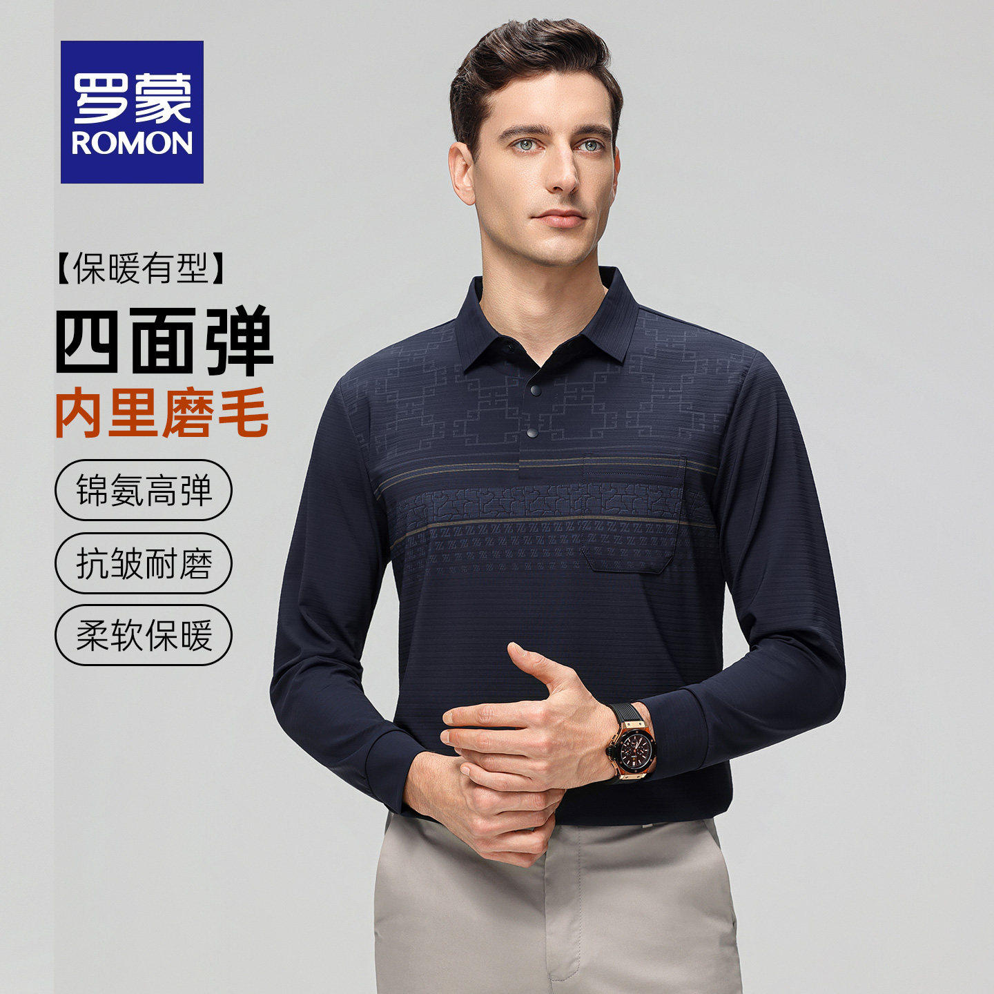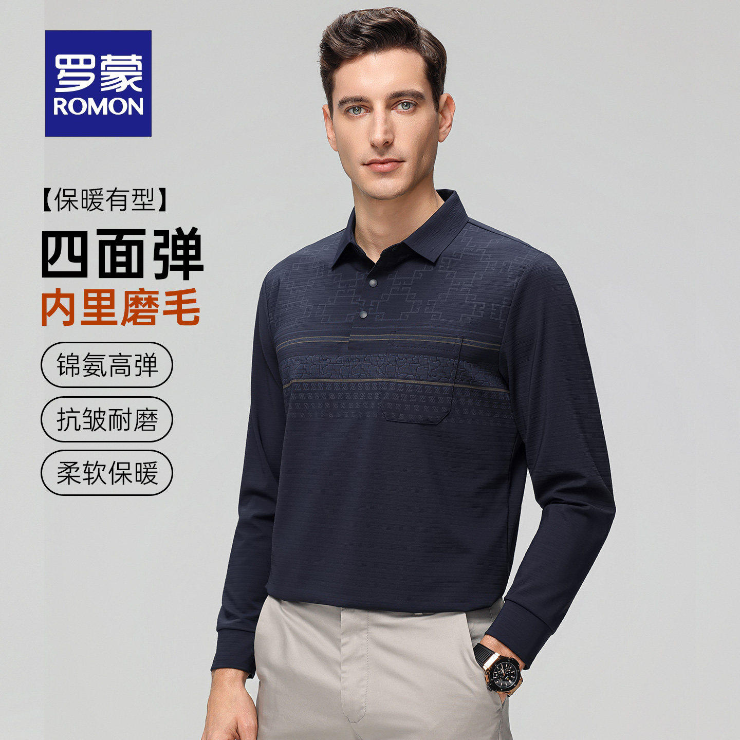 【四面高弹】罗蒙男士商务休闲长袖POLO衫2026春季新款爸爸装T恤