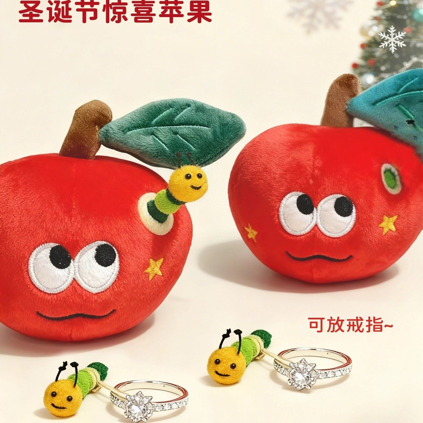 惊喜苹果小虫玩偶可爱红苹果挂件毛绒玩具公仔摆件圣诞节礼物女生
