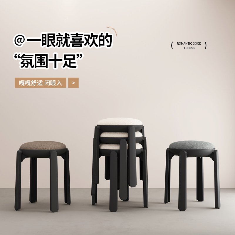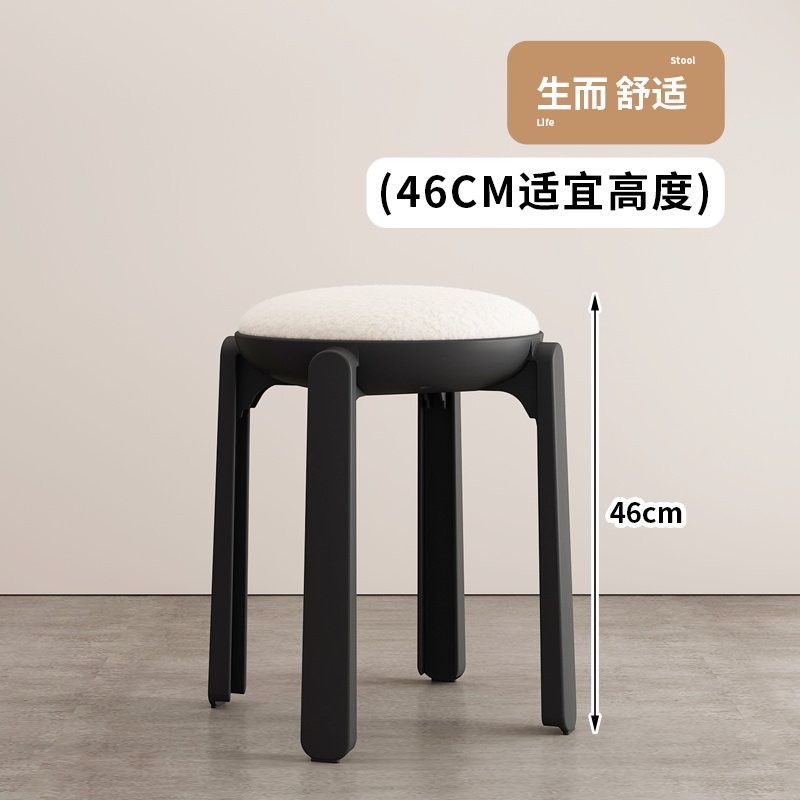 北欧风餐桌凳子家用客厅可叠放圆凳轻奢高级感化妆梳妆凳毛绒餐椅