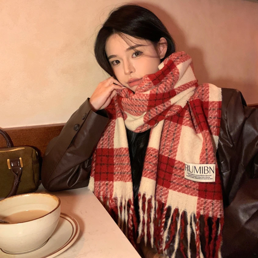 圣诞新年红色格子围巾女秋冬保暖氛围感韩版百搭披肩学生2025新款