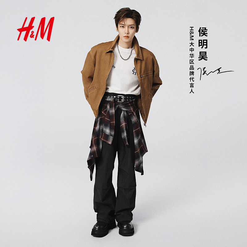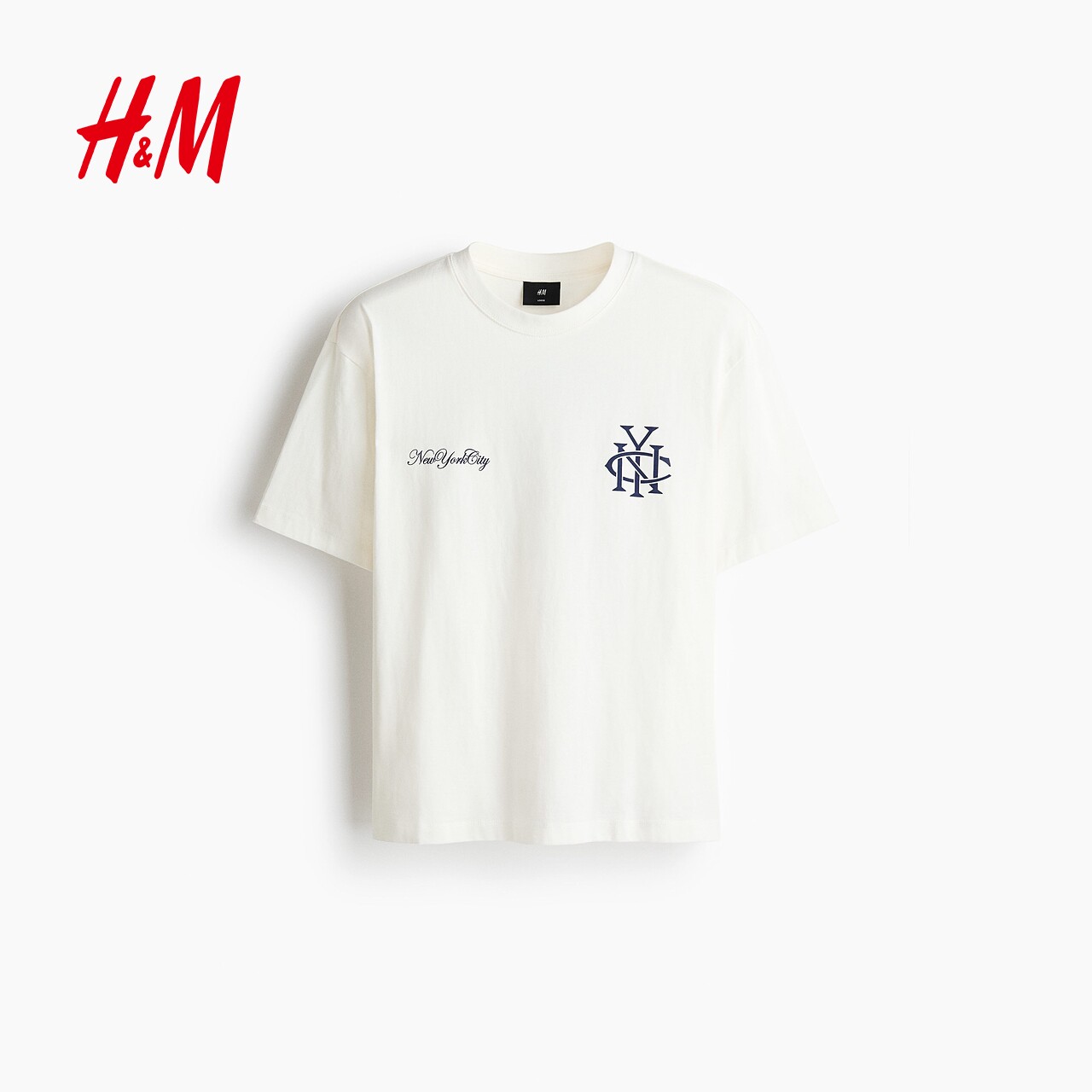 【侯明昊同款】HM男装女装T恤春季情侣装宽松短袖美式上衣1313924