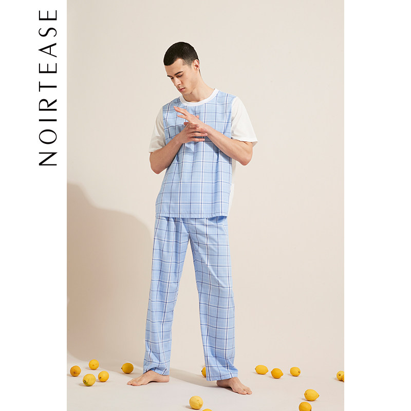 NoirTease奈黎诗春夏薄款男士睡衣两件套装简约拼接家居服可外穿