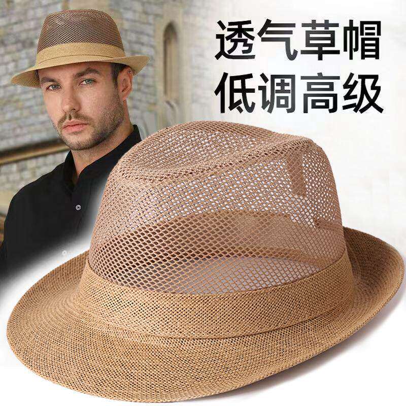 帽子男士夏天礼帽中老年人防晒遮阳帽透气凉帽网眼草帽爸爸太阳帽