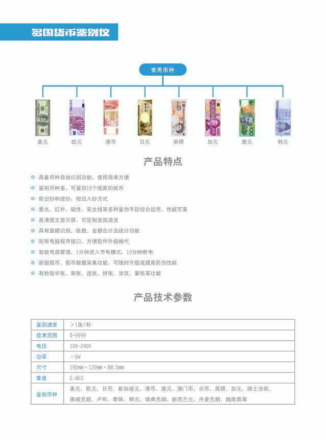 华夏聚龙全自动多国外币鉴别仪可鉴别19种国家货币银行柜台专用