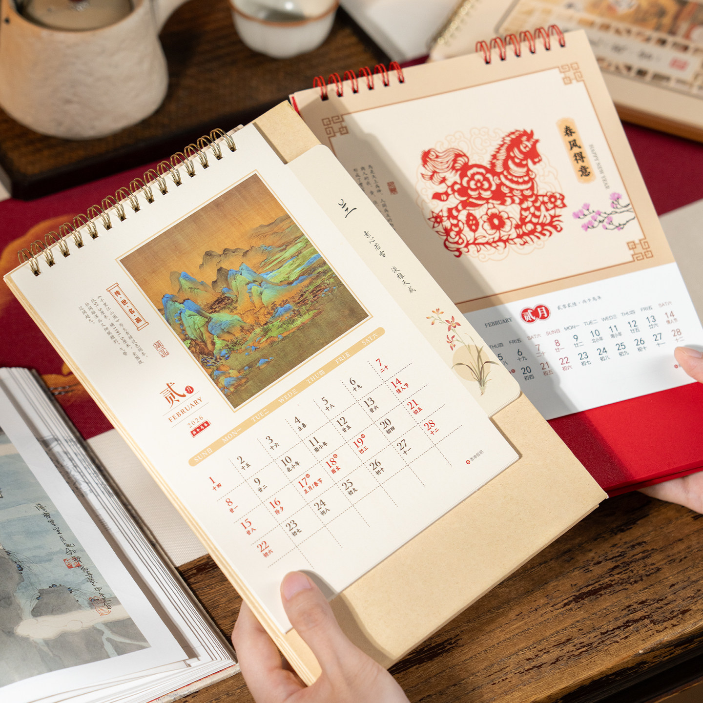 张小凤日历台历2026年新款定制红色喜庆商务办公室桌面高级红家用摆件国风艺术创意文创高端