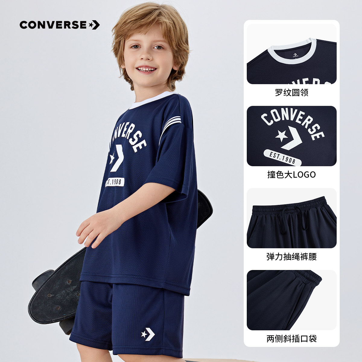 匡威童装男童套装2025夏季新款上衣短裤两件套潮流篮球运动服宽松