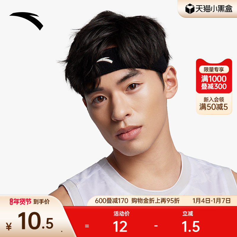 安踏运动头带男女同款吸汗速干黑色新款百搭发带正品1826172517R