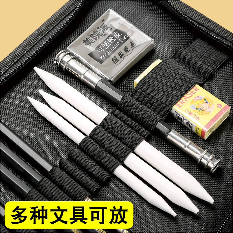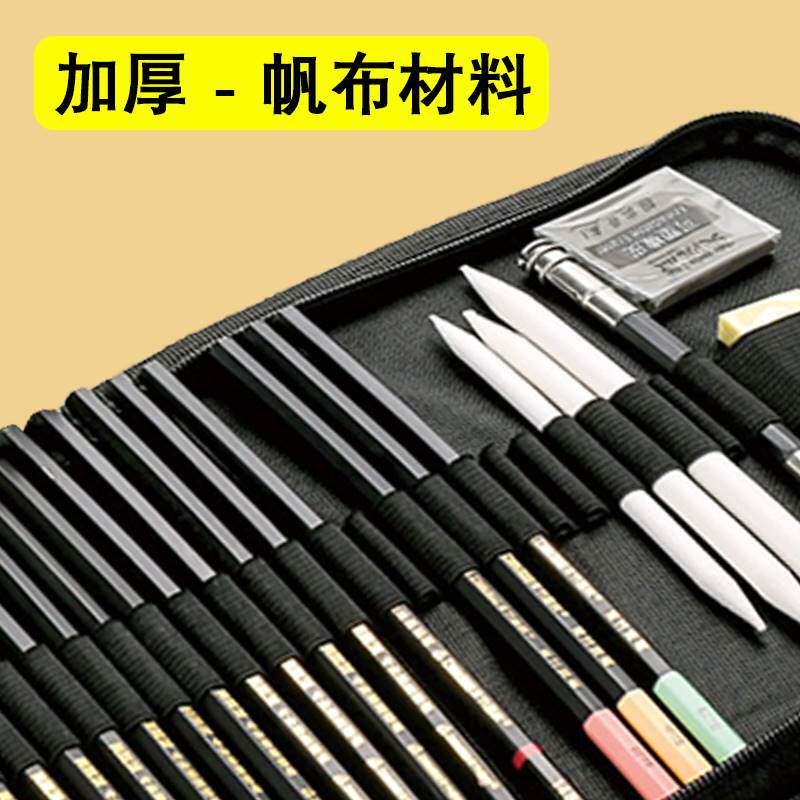 折叠式帆布笔袋素描铅笔笔帘学生美术工具对折拉链插笔收纳包卷袋