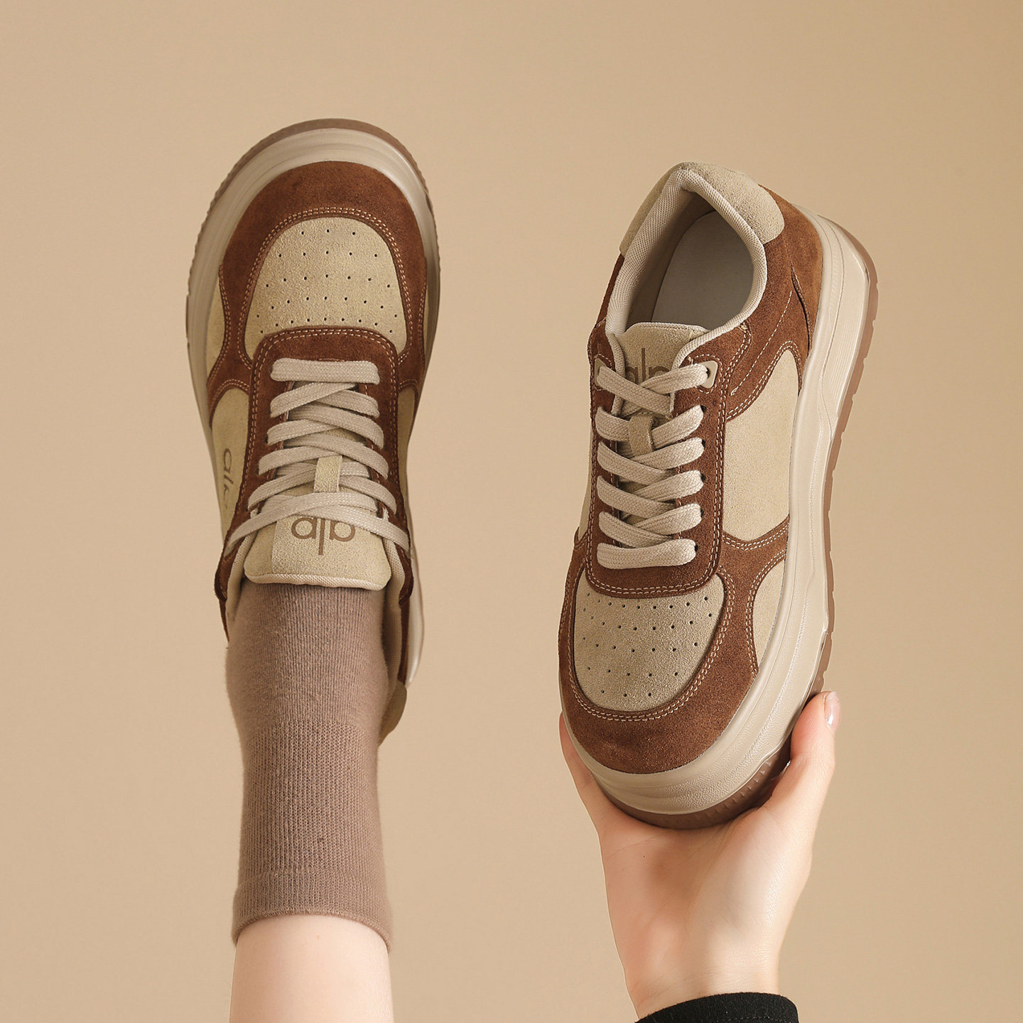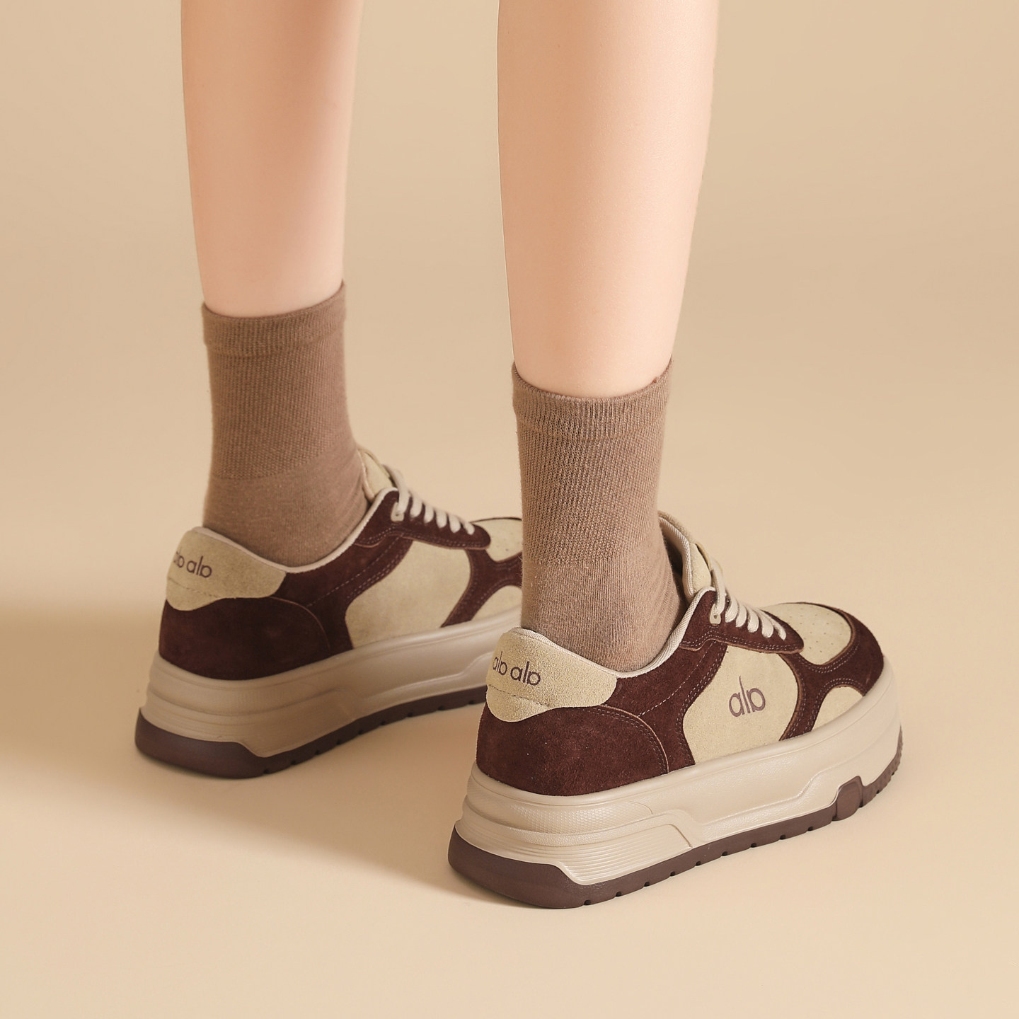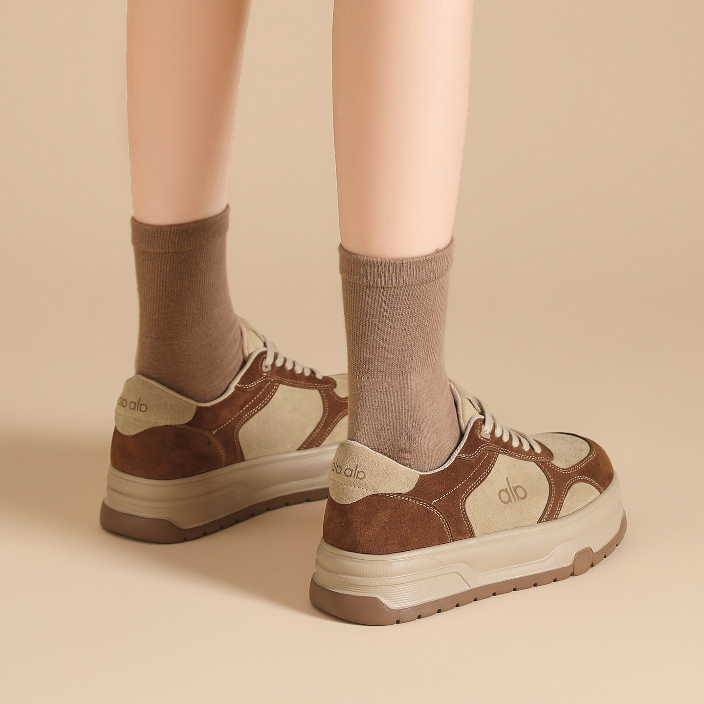 【明星同款】Wander around 复古棕色厚底增高休闲板鞋男女同款