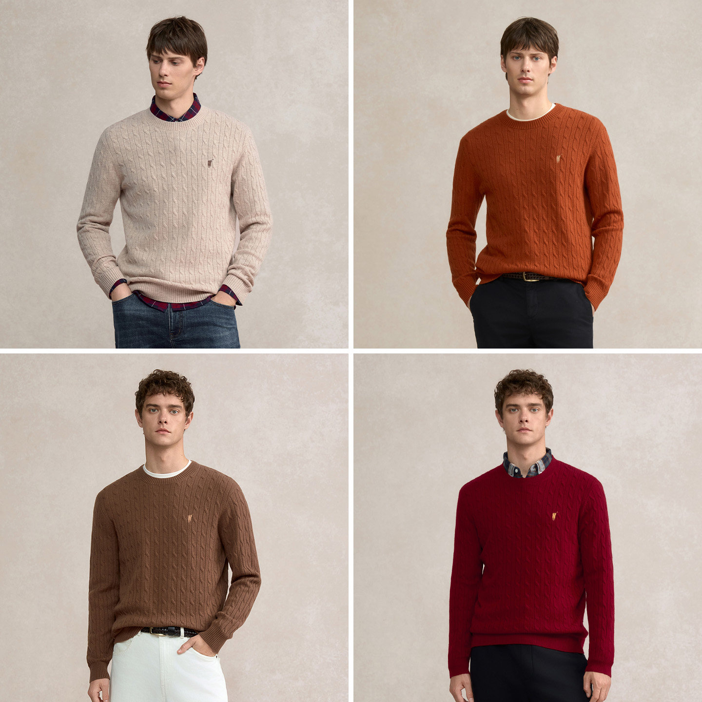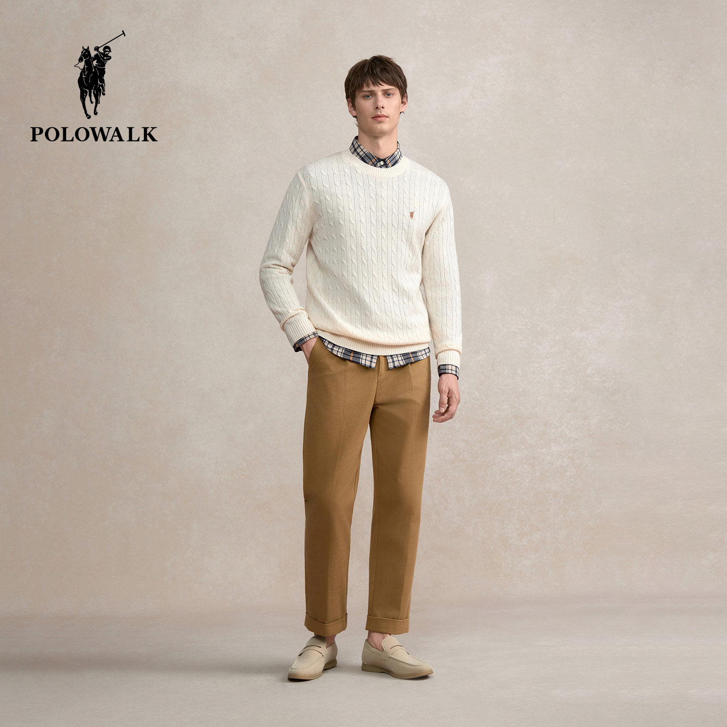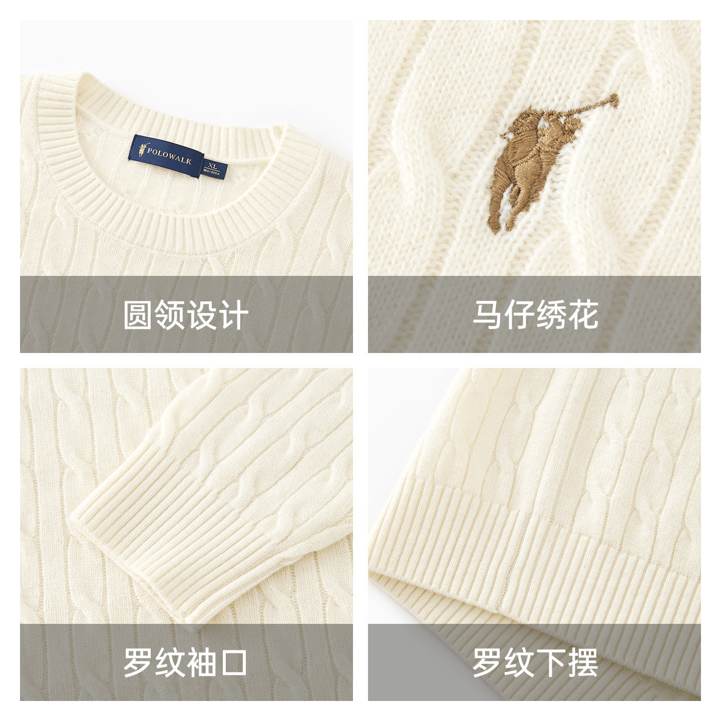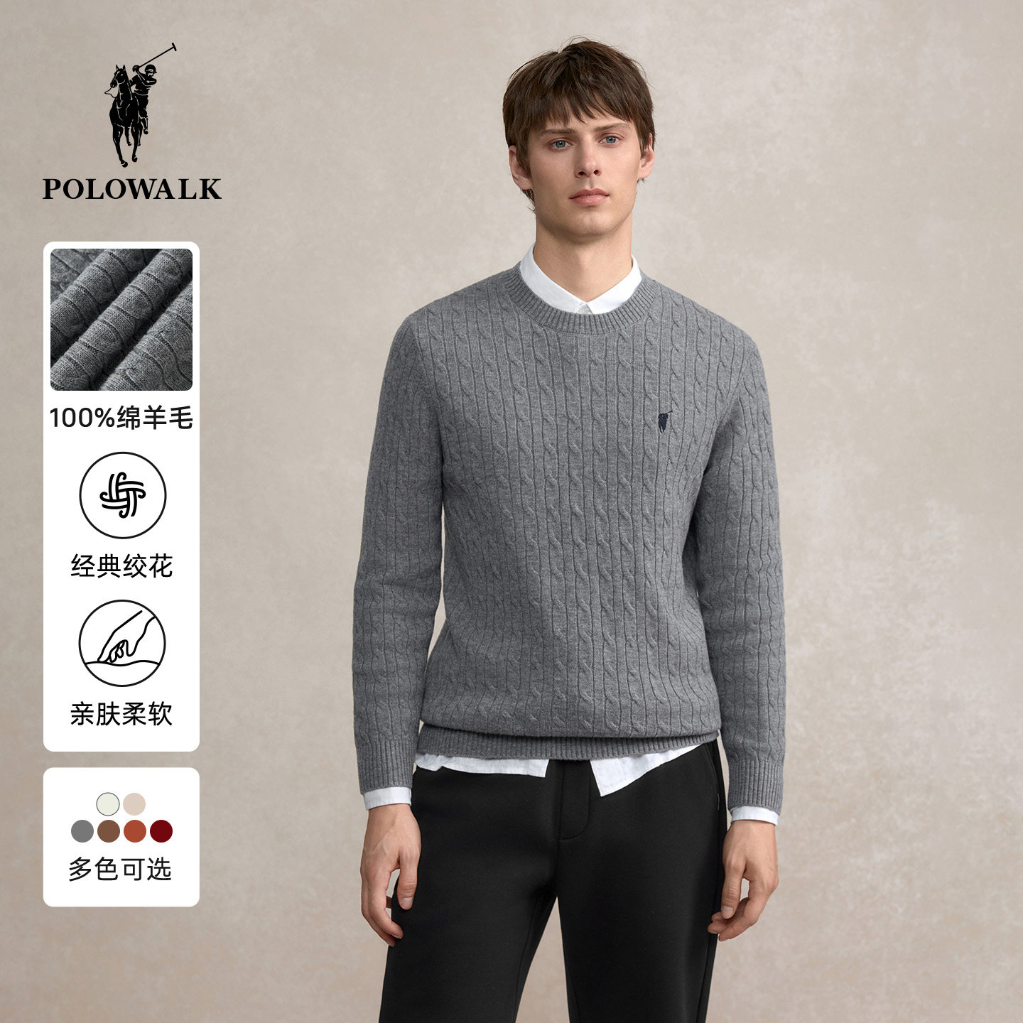 【100%绵羊毛】POLOWALK男士2025秋冬红色针织衫圆领绞花羊毛衫男