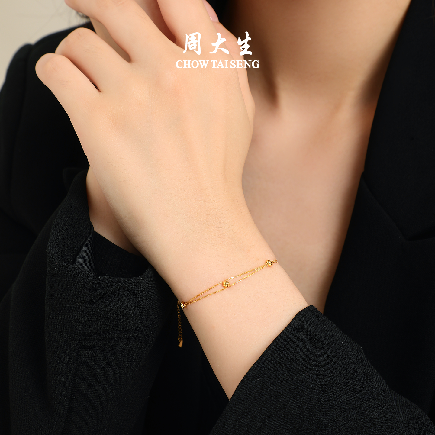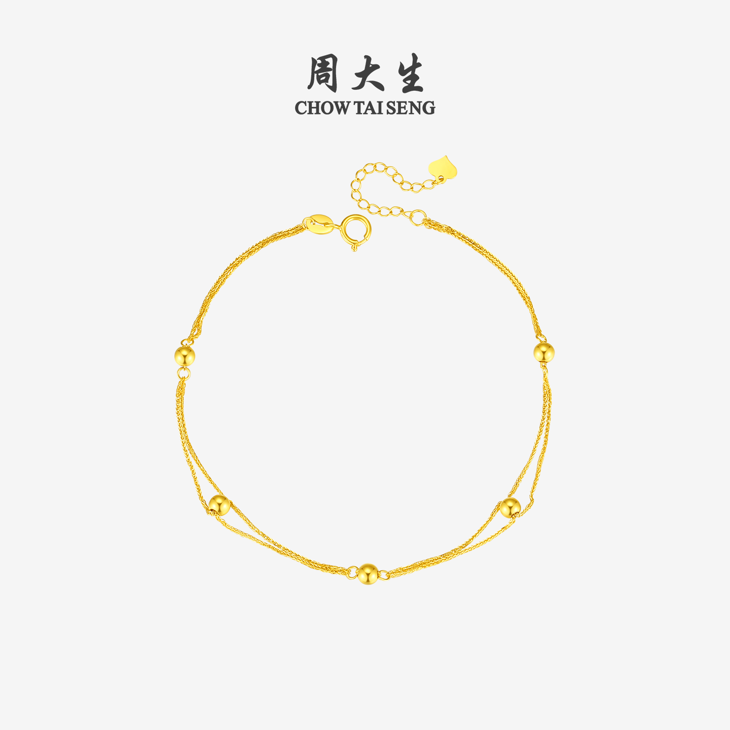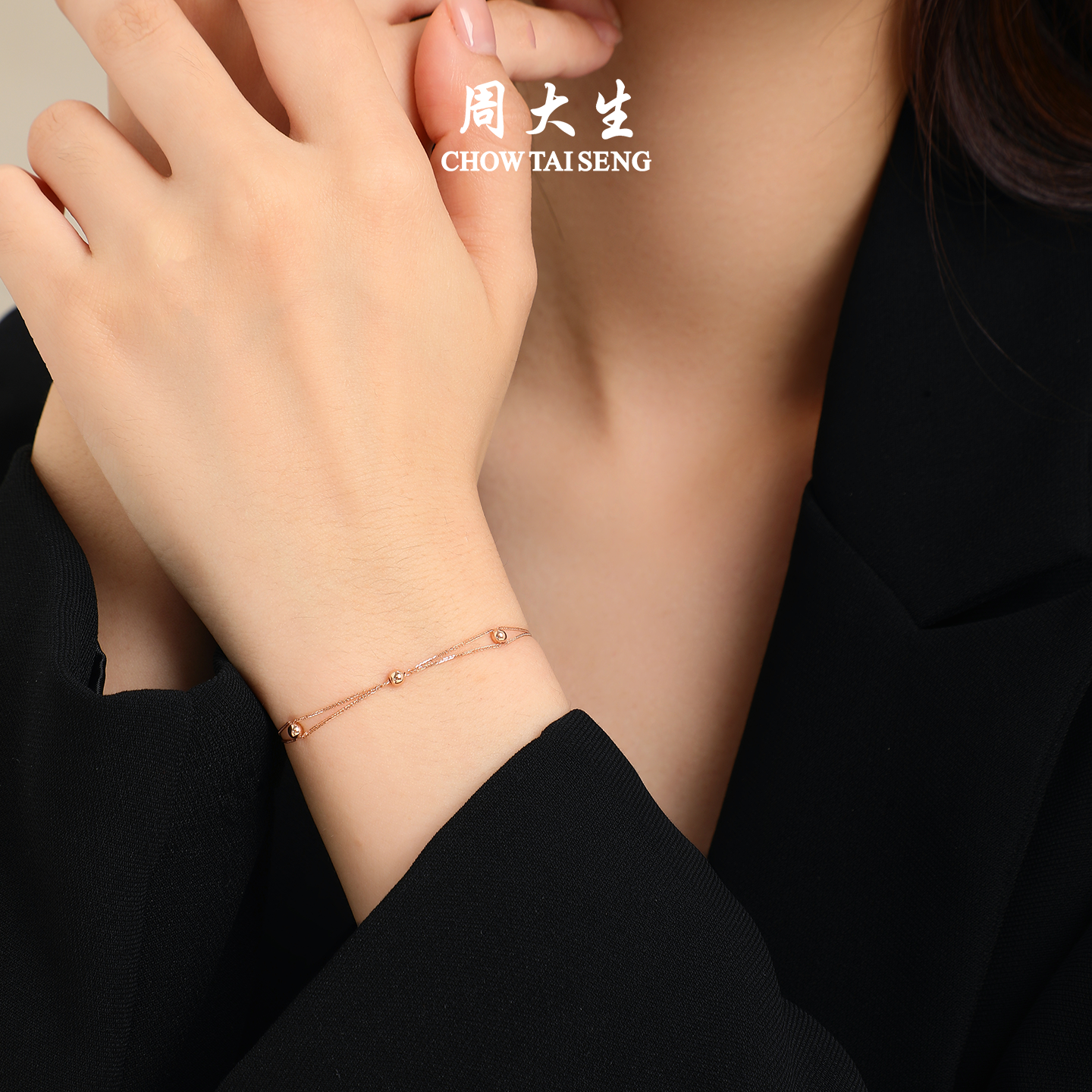 周大生黄18K金手链女光珠双层彩金玫瑰金手饰送女友新年礼物