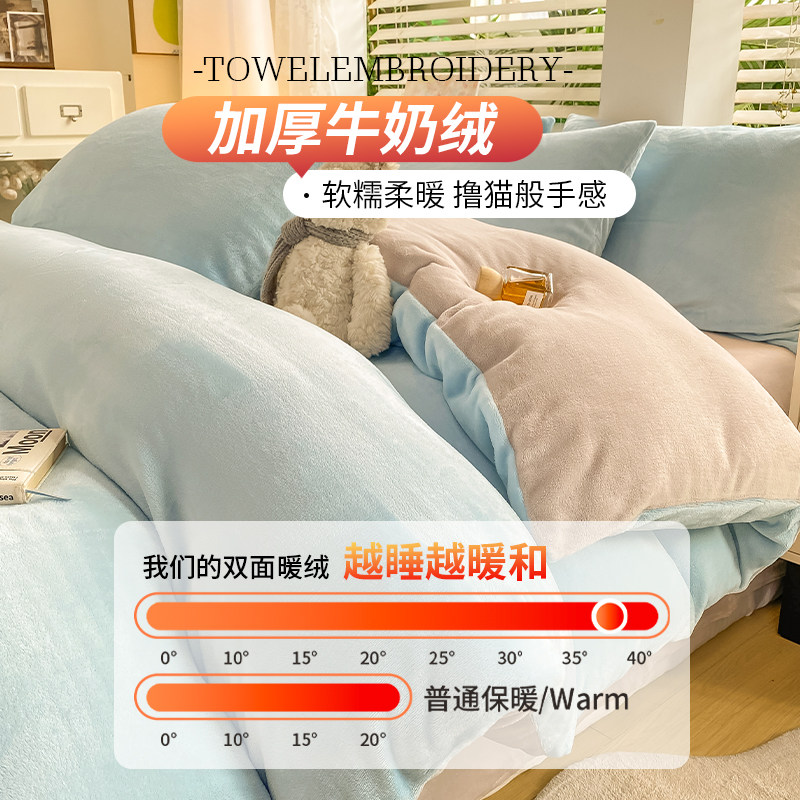 秋冬季加厚四件套牛奶绒被套床单双面加绒被罩床笠学生宿舍三件套