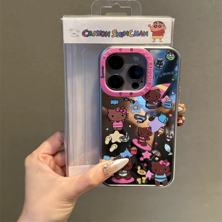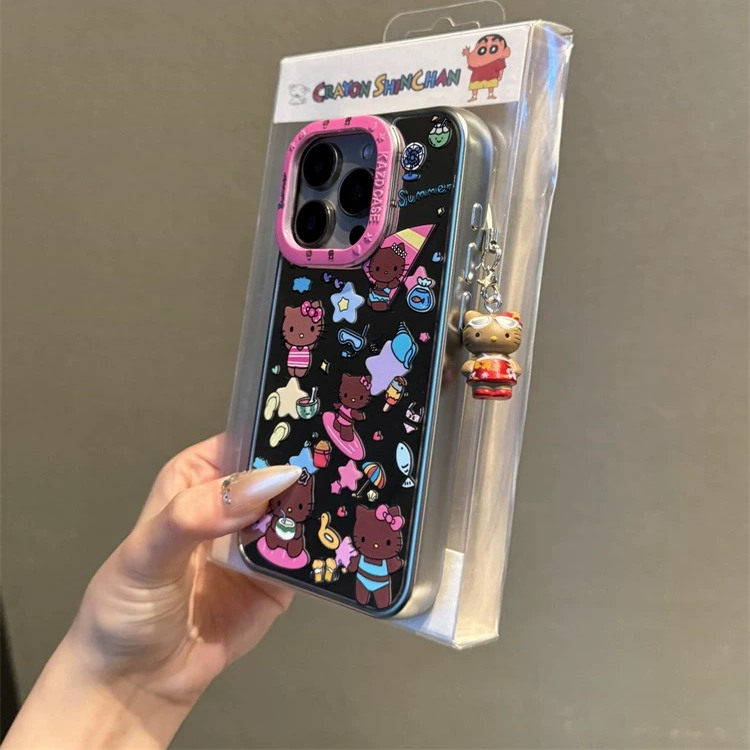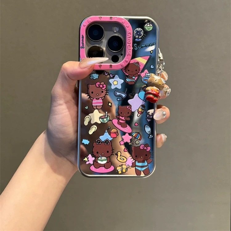 夏威夷度假滑板黑皮kitty猫适用苹果iphone16promax新款15手机壳14pro防摔保护套15Pro女款13带挂件