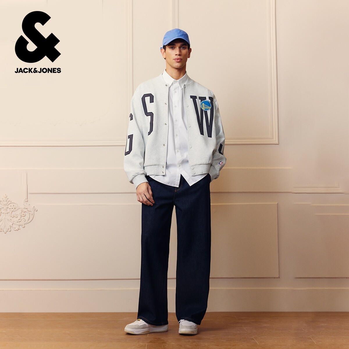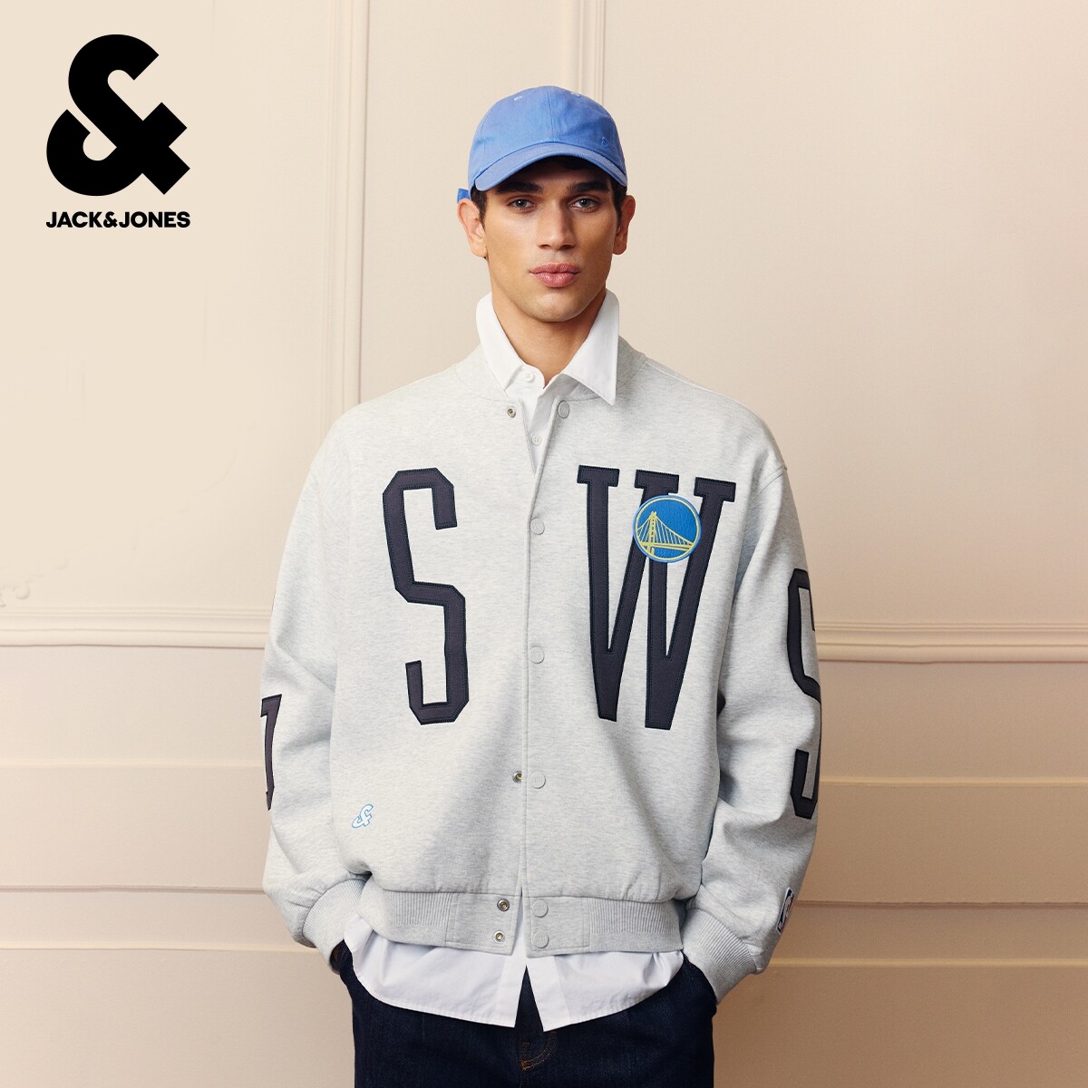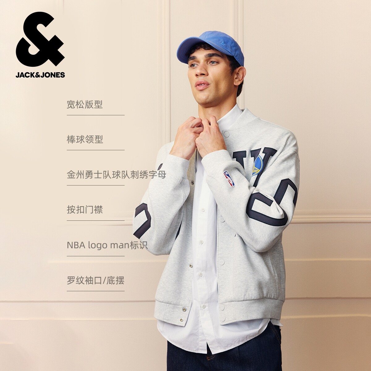 杰克琼斯NBA联名金州勇士球队男装夹克春季时尚潮宽松棒球领外套