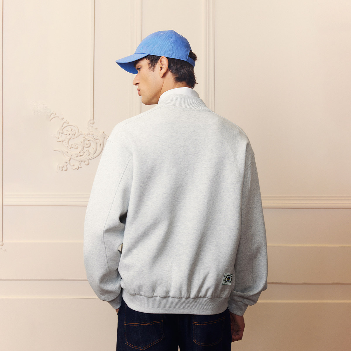 略宽松版型;棒球领型;罗纹领口袖口底摆