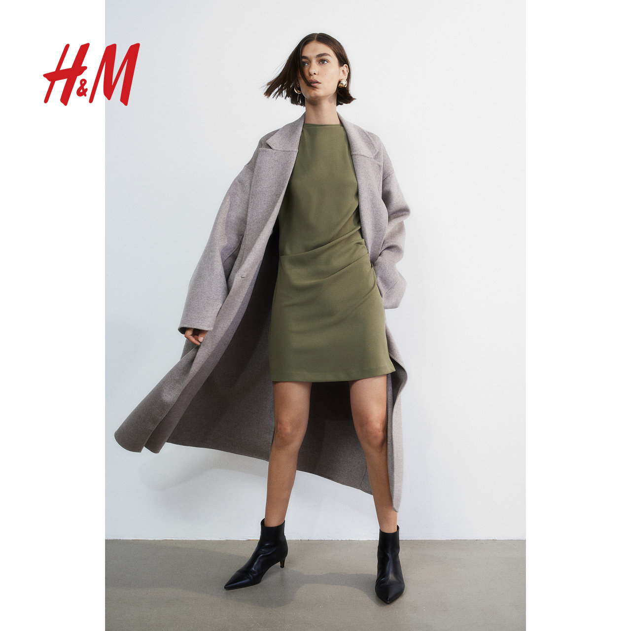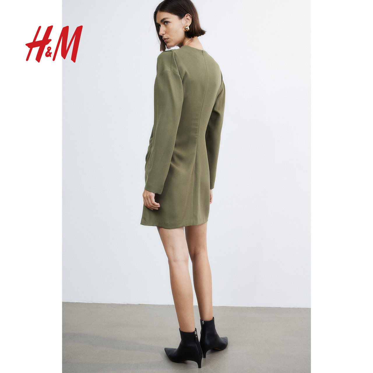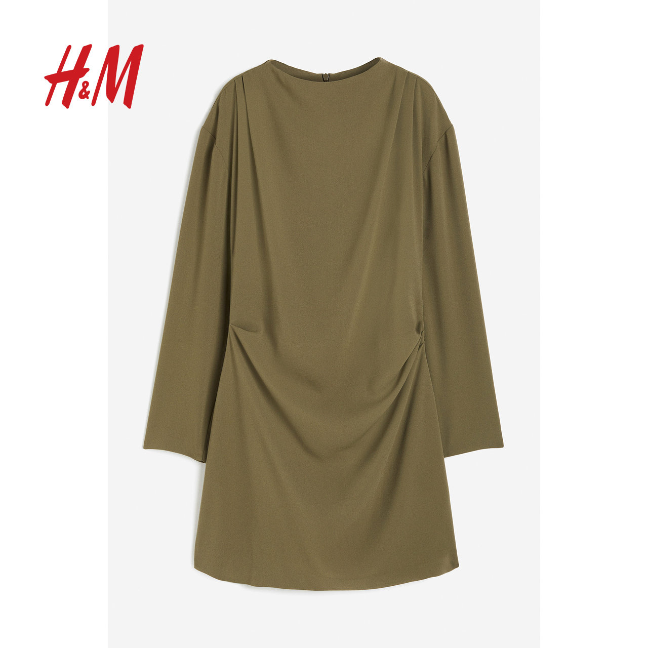 HM女装连衣裙秋季时尚垂坠感长袖立领短裙1198523