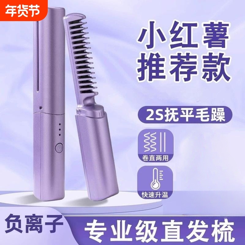 迷你无线直发梳负离子不伤发便携式持久定型充电直板夹卷发棒神器