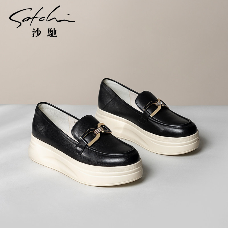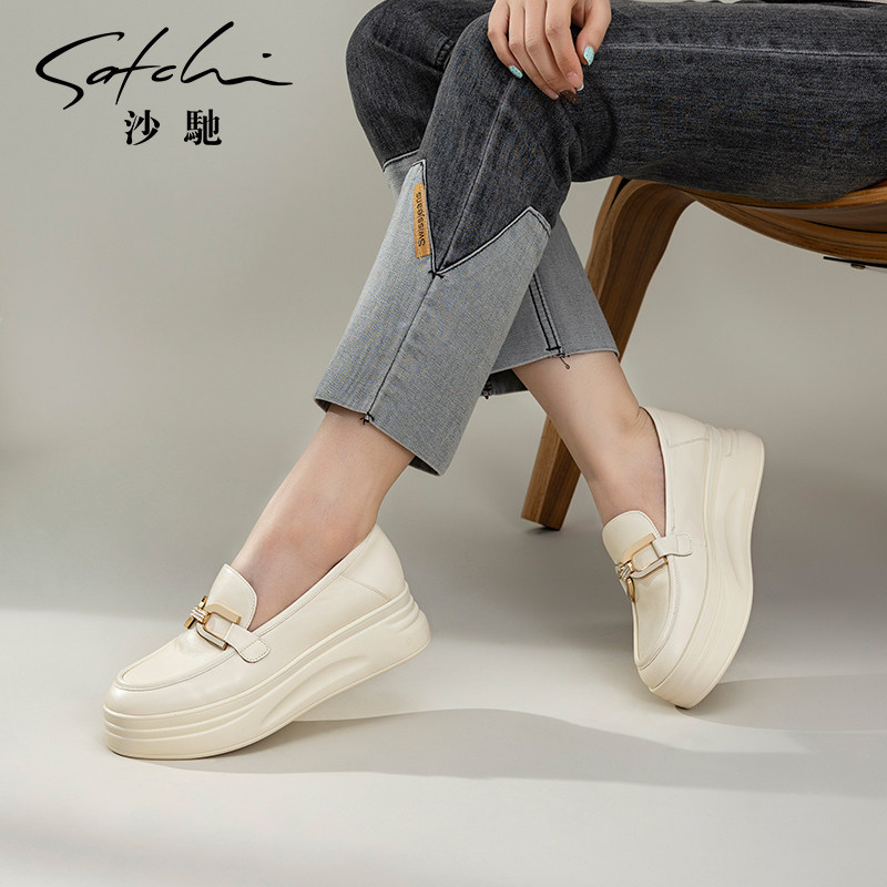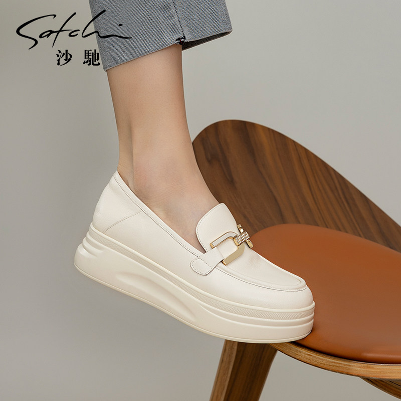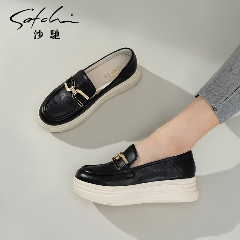 沙驰女鞋软底厚底休闲鞋女单鞋2026年新款春季圆头深口懒人乐福鞋