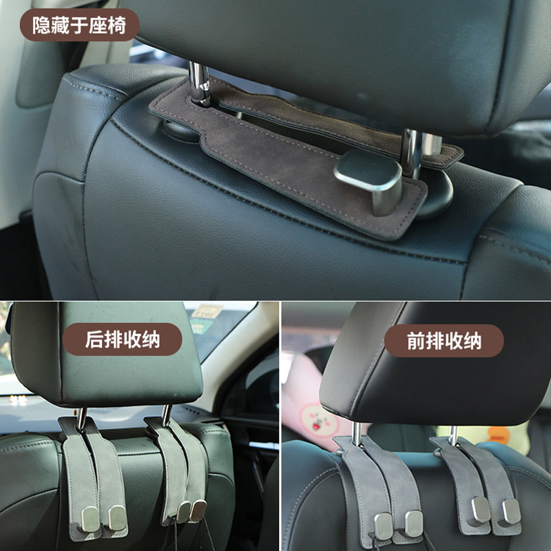 汽车挂钩车载座椅背升级隐藏双挂钩翻毛皮后排车内用包包储物挂钩