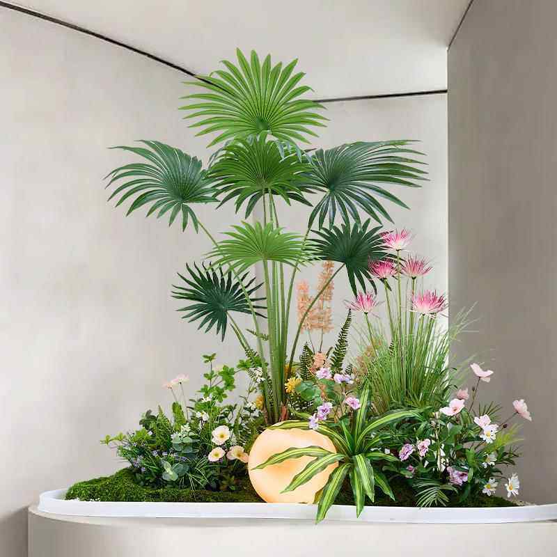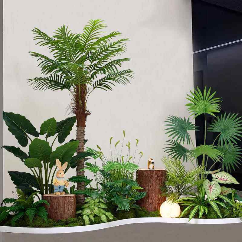 室内造景仿真热带雨林绿植景观假植物装饰场景布置楼梯下角落商场