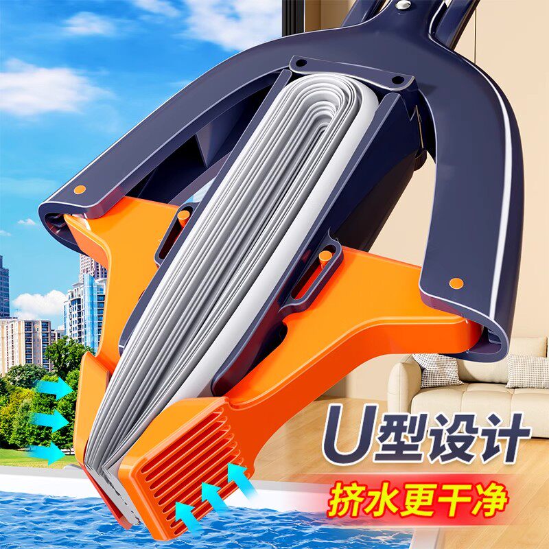 海绵拖把免手洗2025新款一拖家用吸水地拖神器净墩布胶棉头对折式