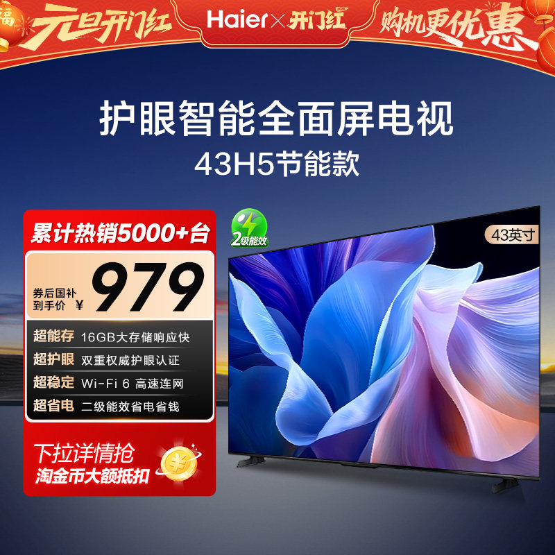 海尔43英寸智能网络小型彩电平板液晶电视机家用以旧换新补贴43H5