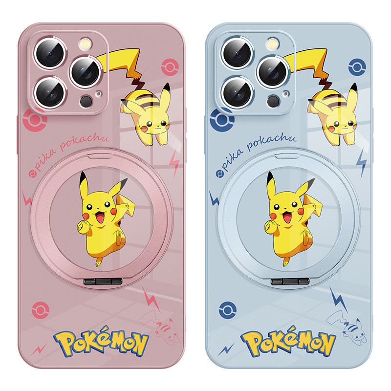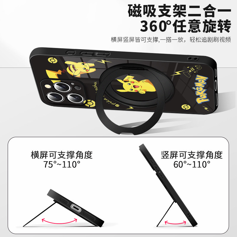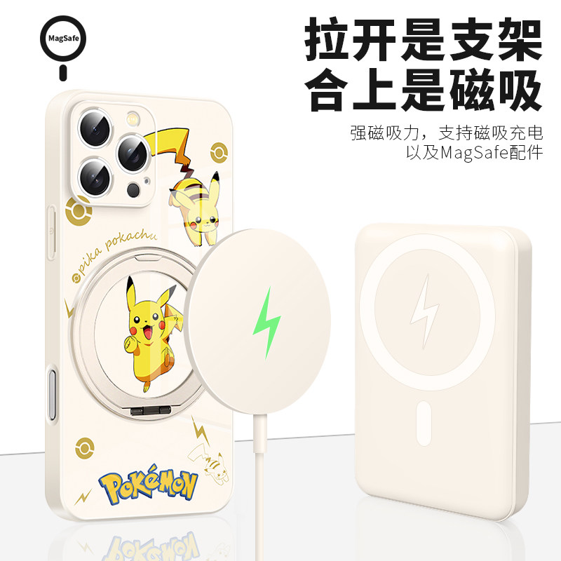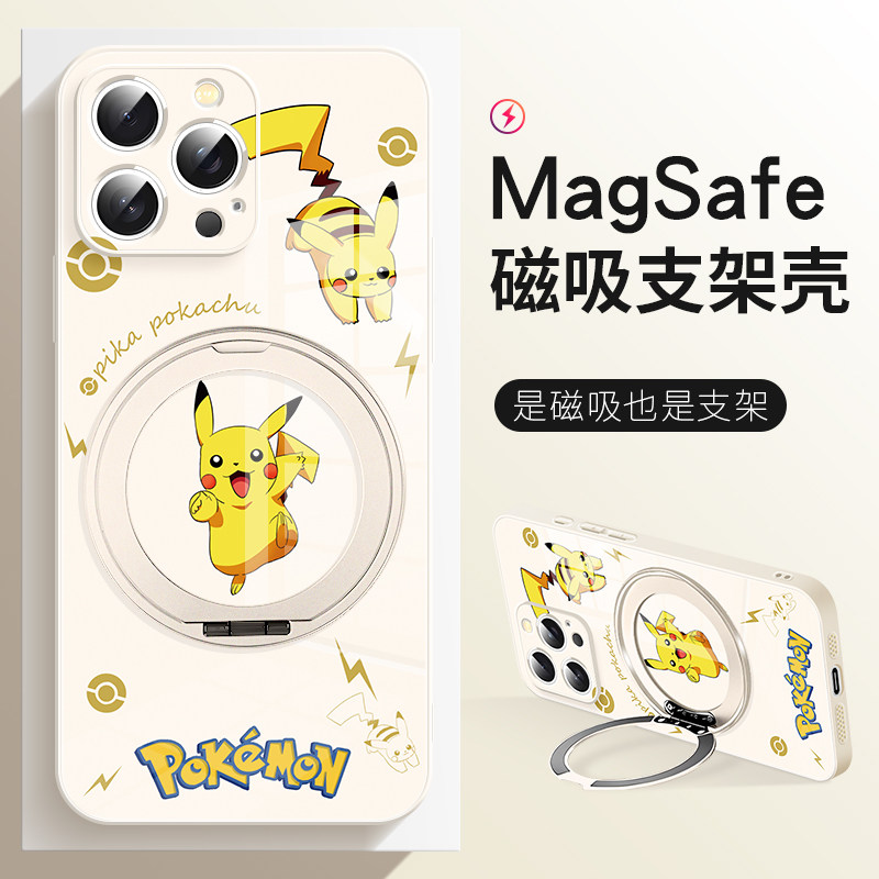 适用于苹果16promax手机壳宝可梦皮卡丘iphone15plus磁吸高级感支点壳17pro带支架14新款MagSafe保护套13防摔
