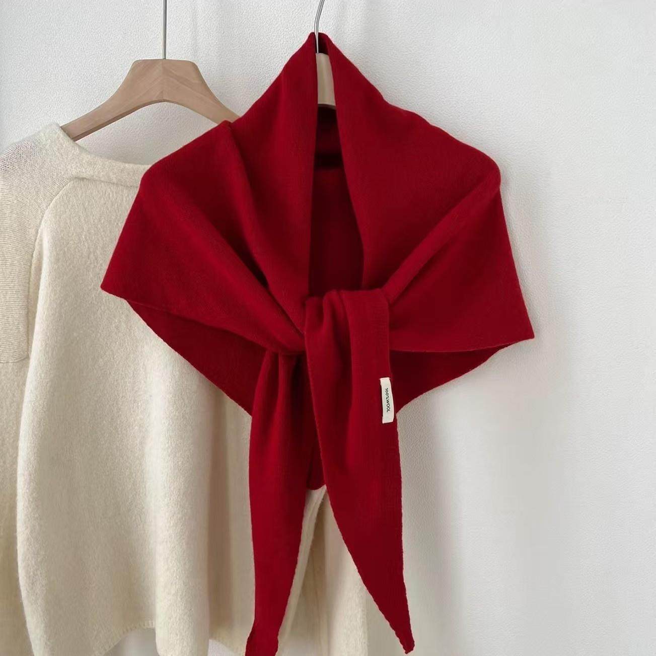 三福围巾流苏韩系高级感红色加大围脖披肩两用外搭女冬季2025新款