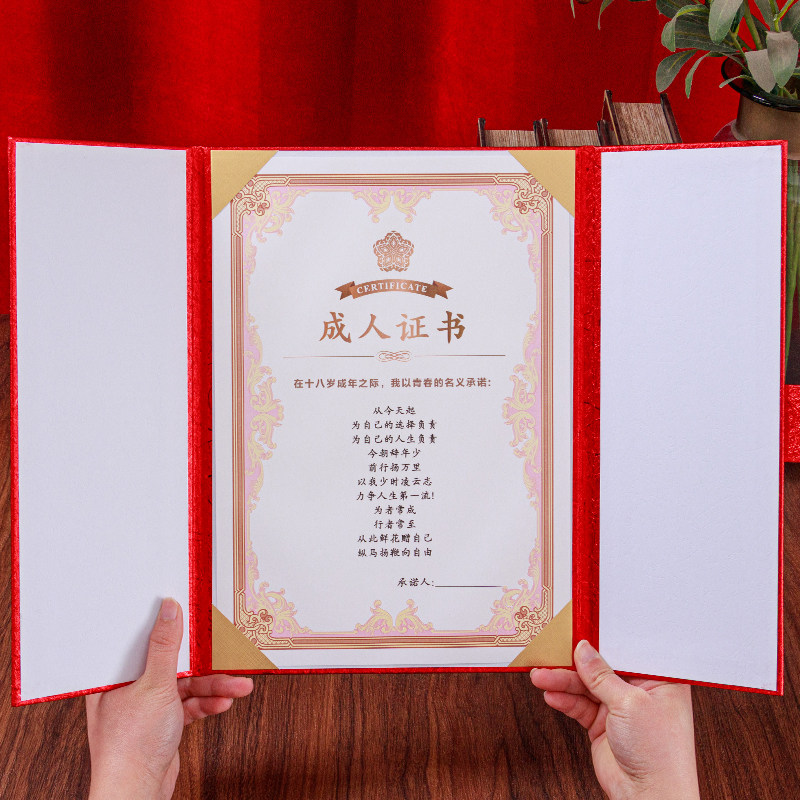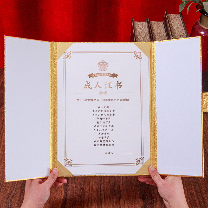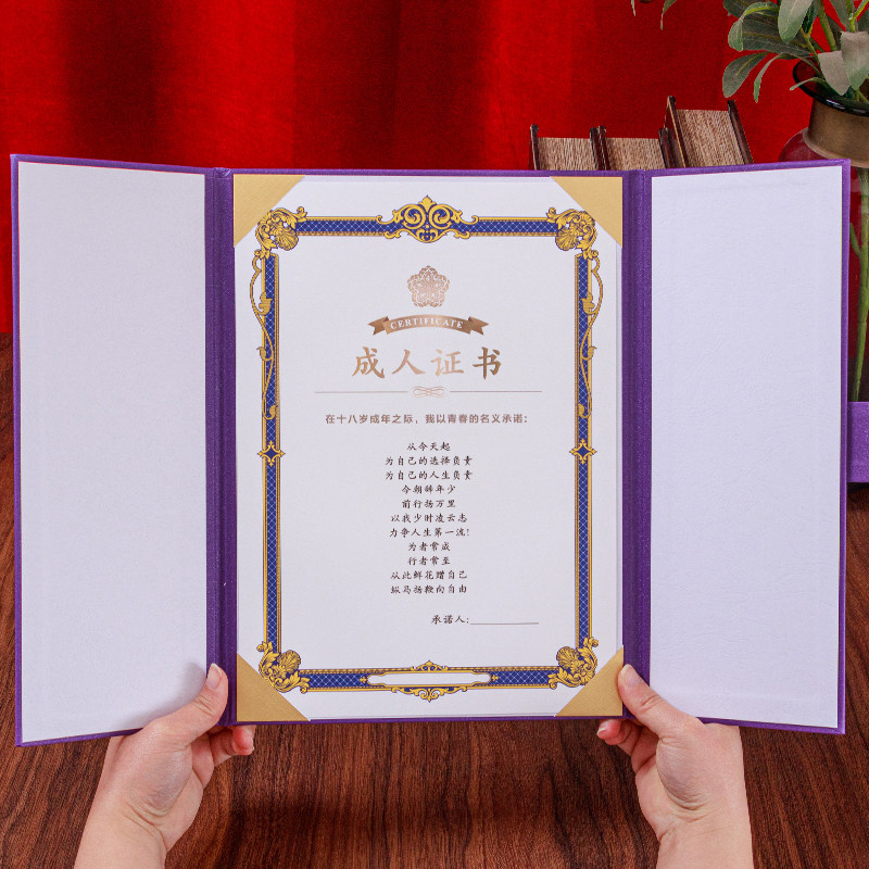 三折成人证书18岁创意礼品学校成人礼高考少年纪念可定制打印内心内页设计排版荣誉宣誓朗诵本生日礼物