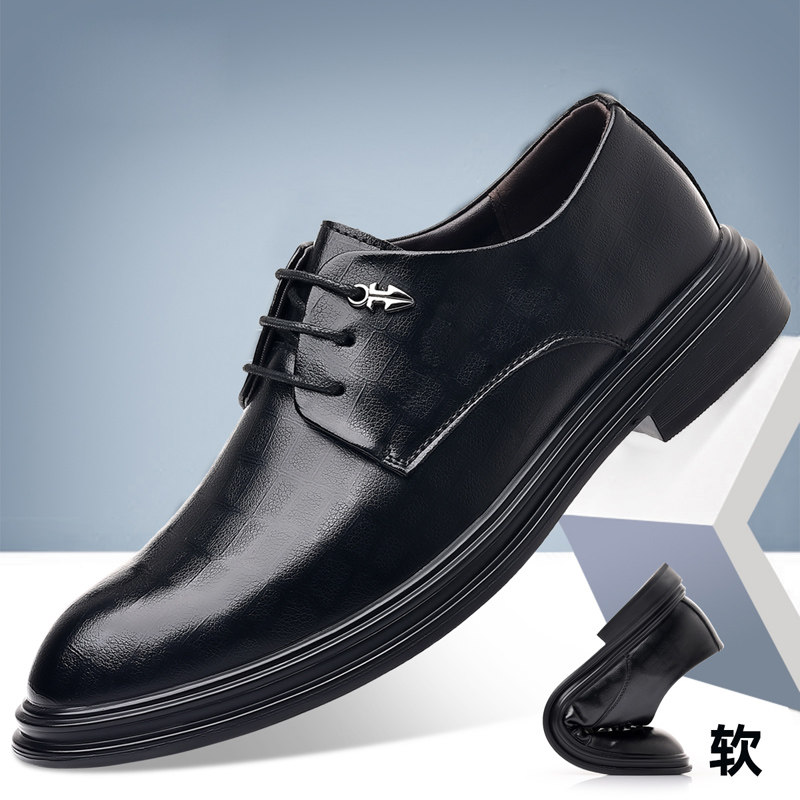 皮鞋男黑色西装男鞋软底男士面试商务正装青年休闲鞋伴郎结婚婚鞋