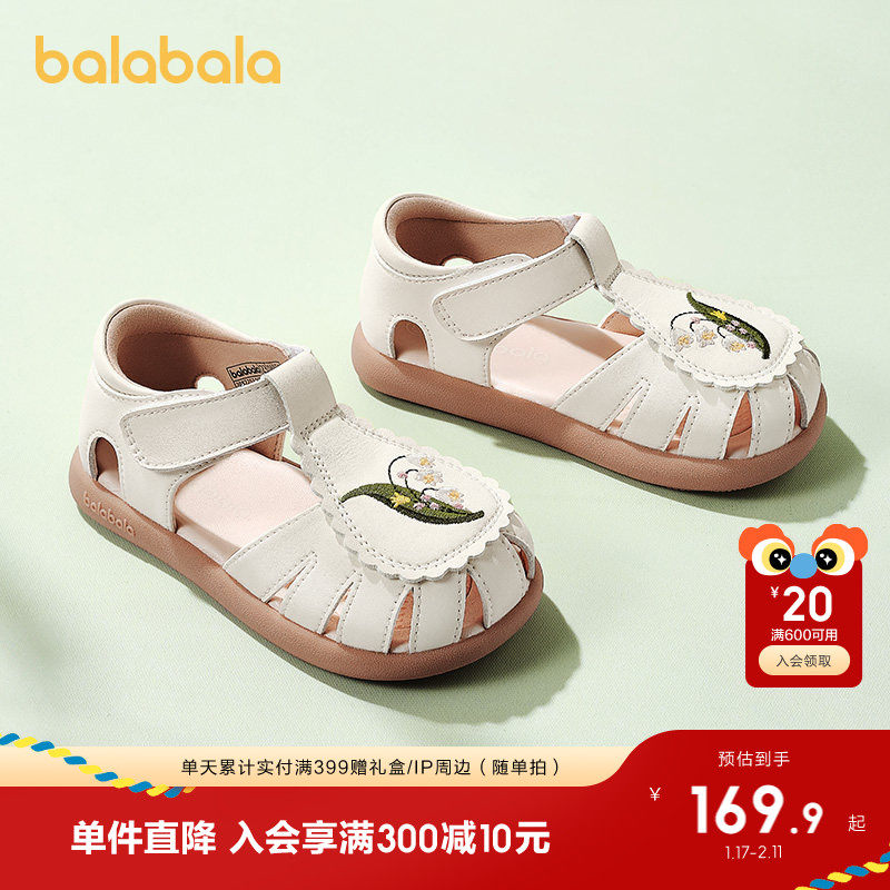 巴拉巴拉童鞋宝宝学步鞋儿童凉鞋女宝2025秋新款防滑包头鞋子国风