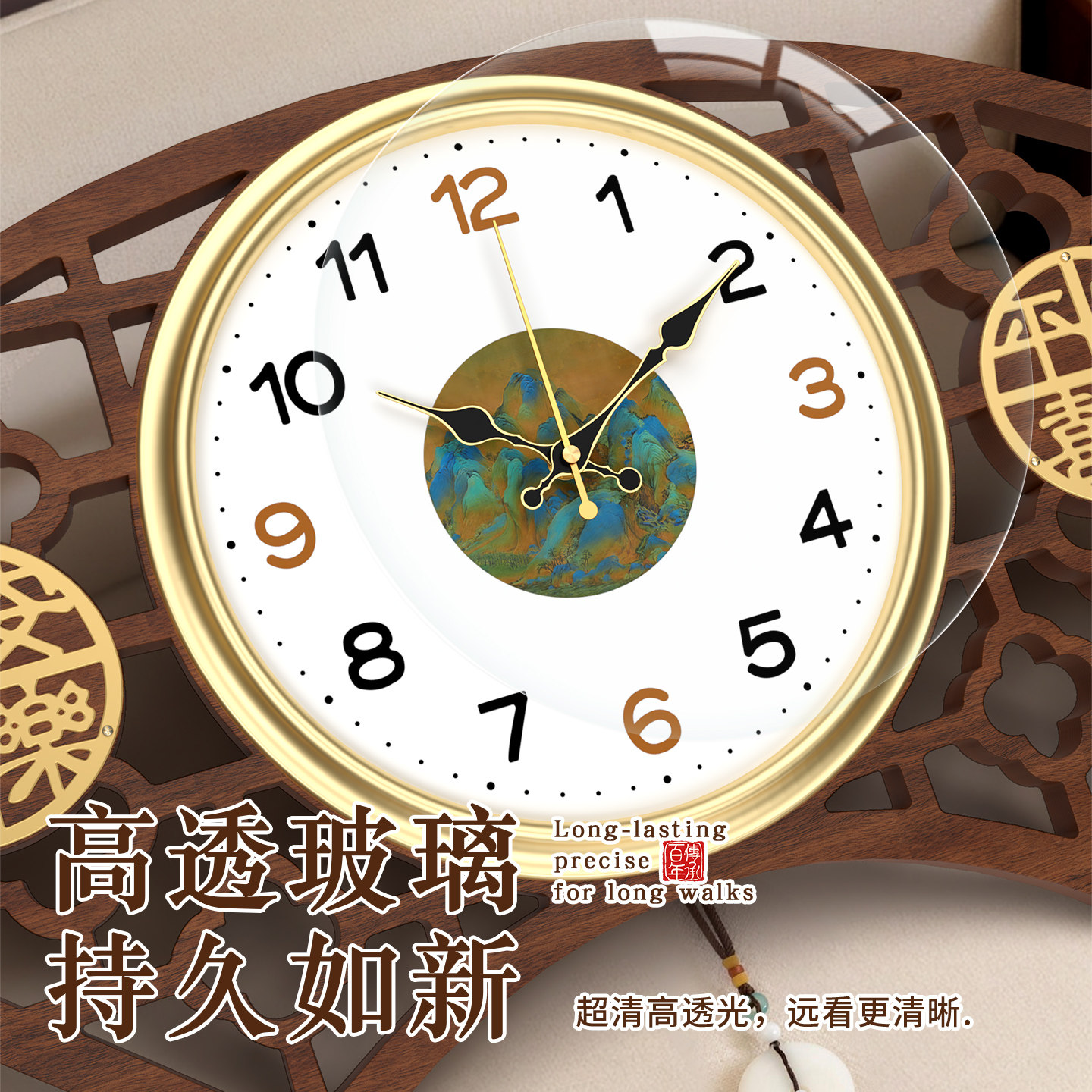 静音石英钟挂钟福字年年有余装饰客厅简约中式挂墙时尚家用时钟表