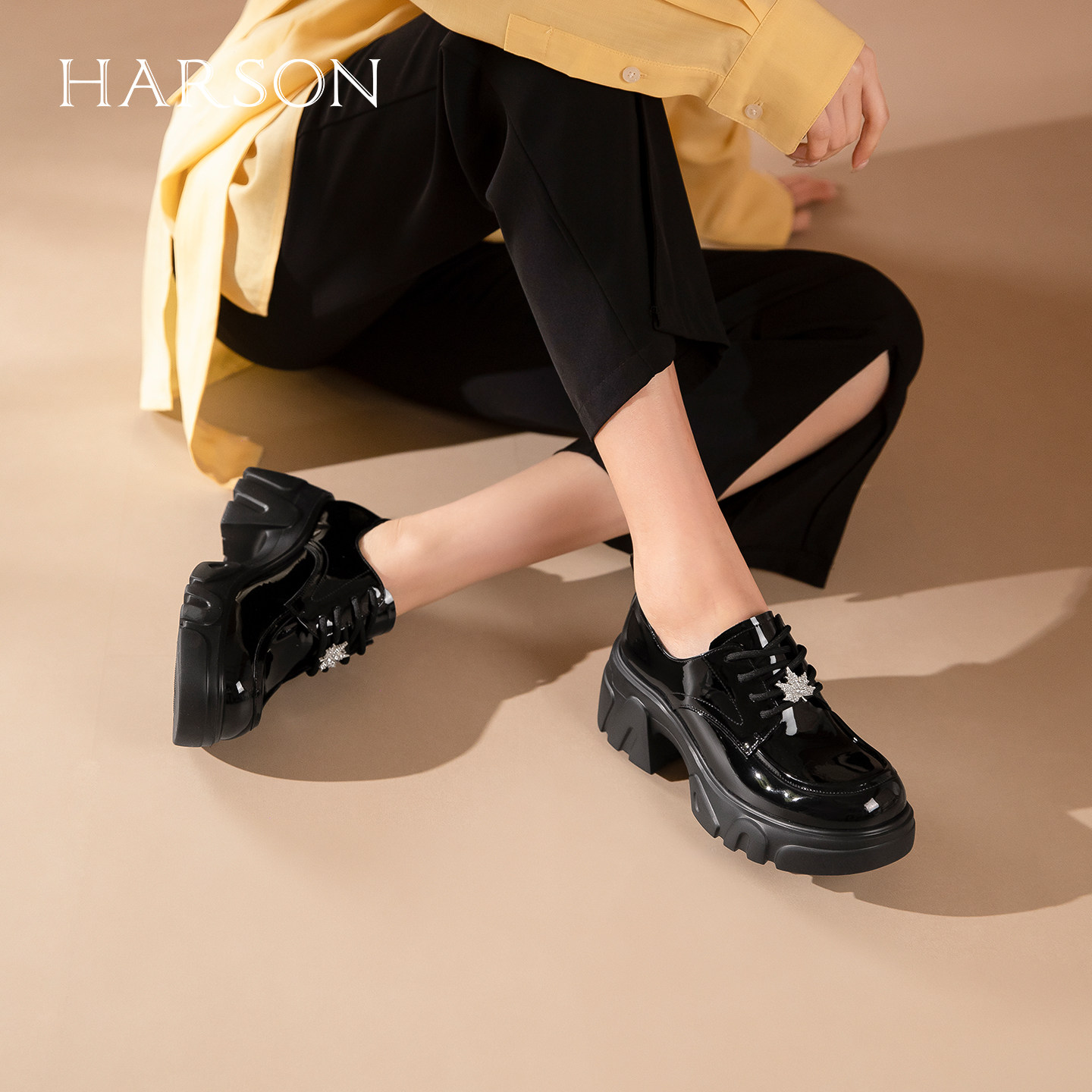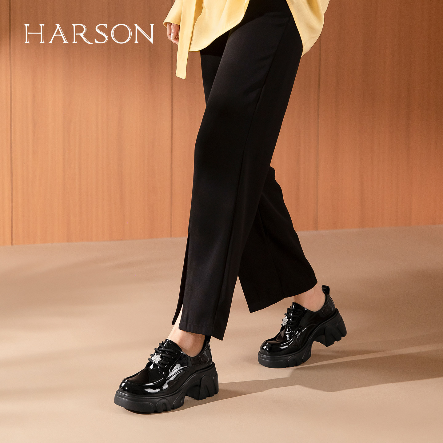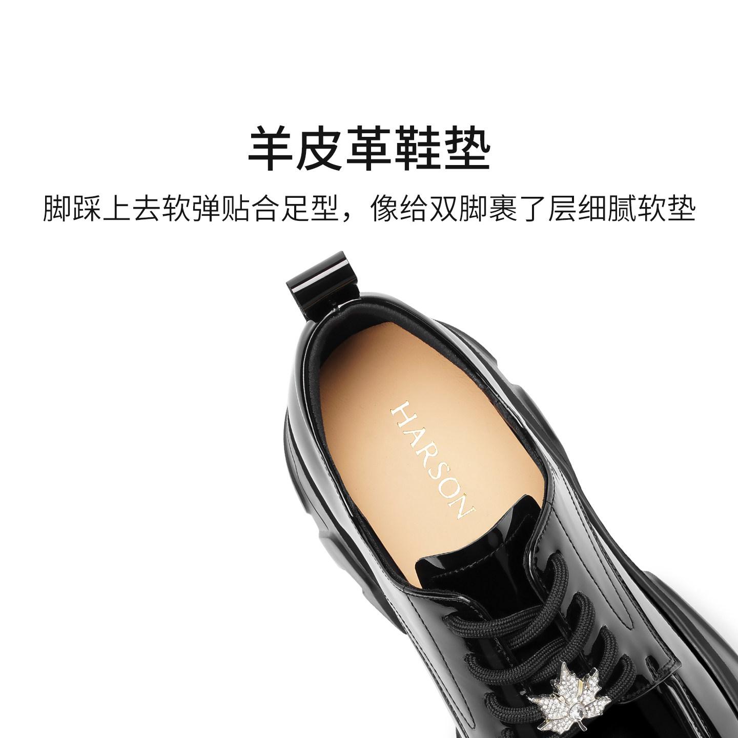 哈森经典圆头系带英伦风乐福鞋增高单鞋百搭通勤2026新款HS262511