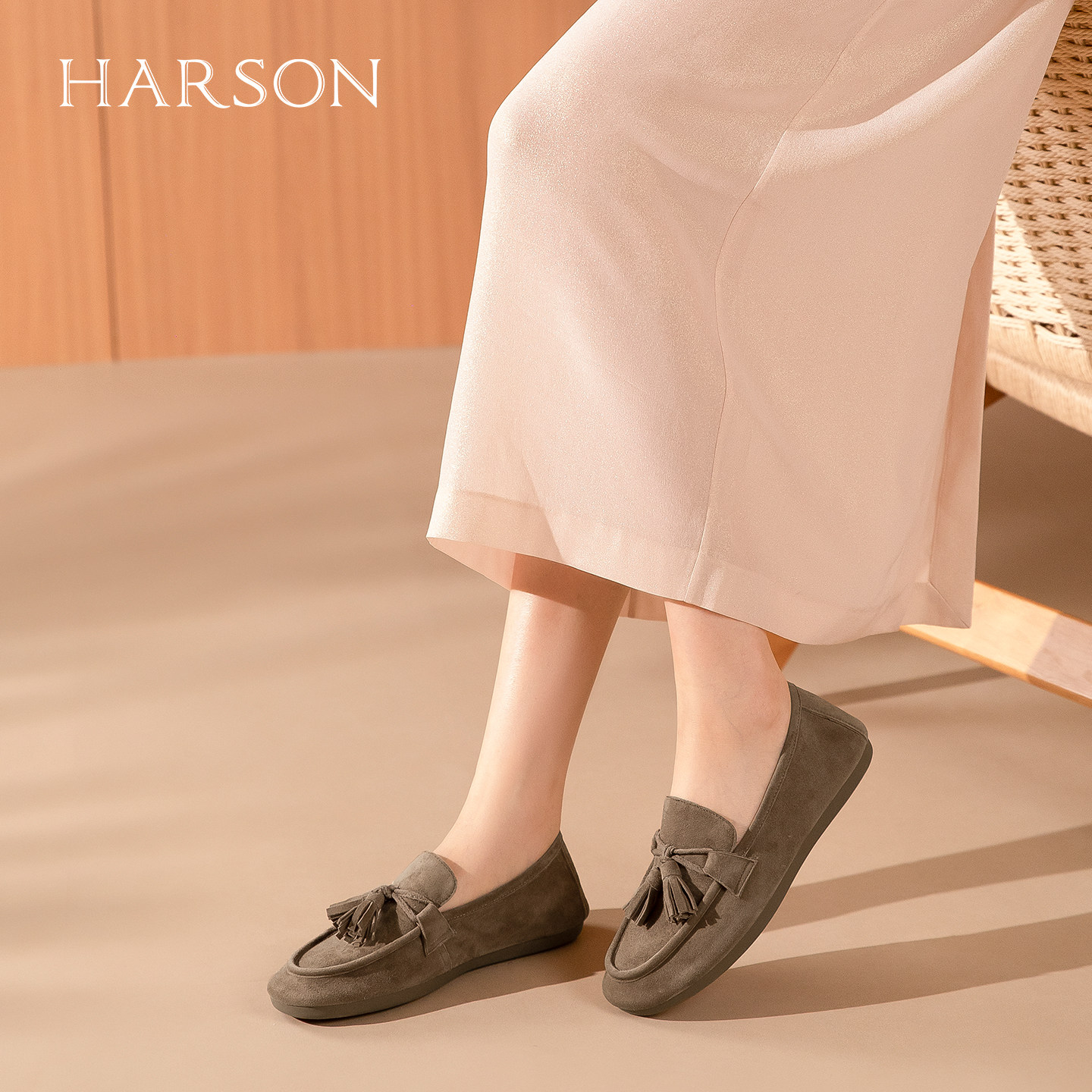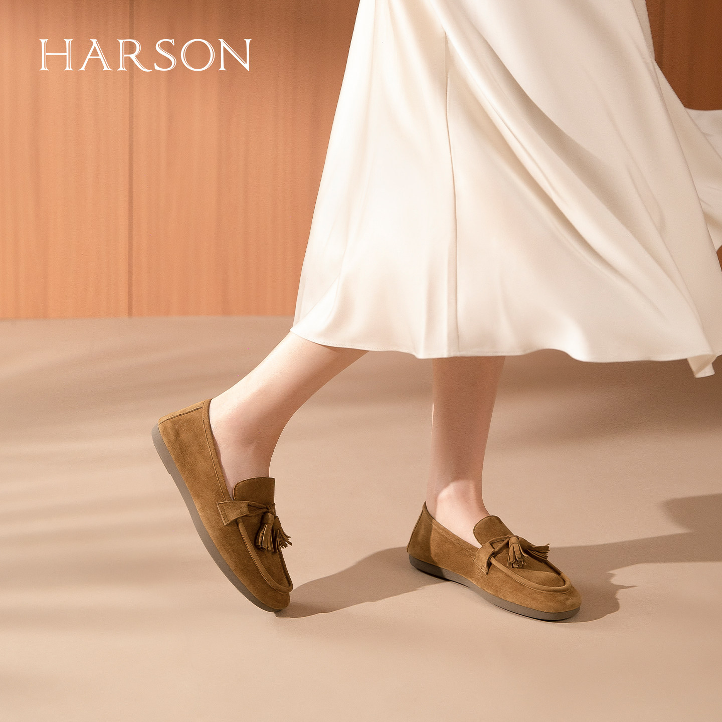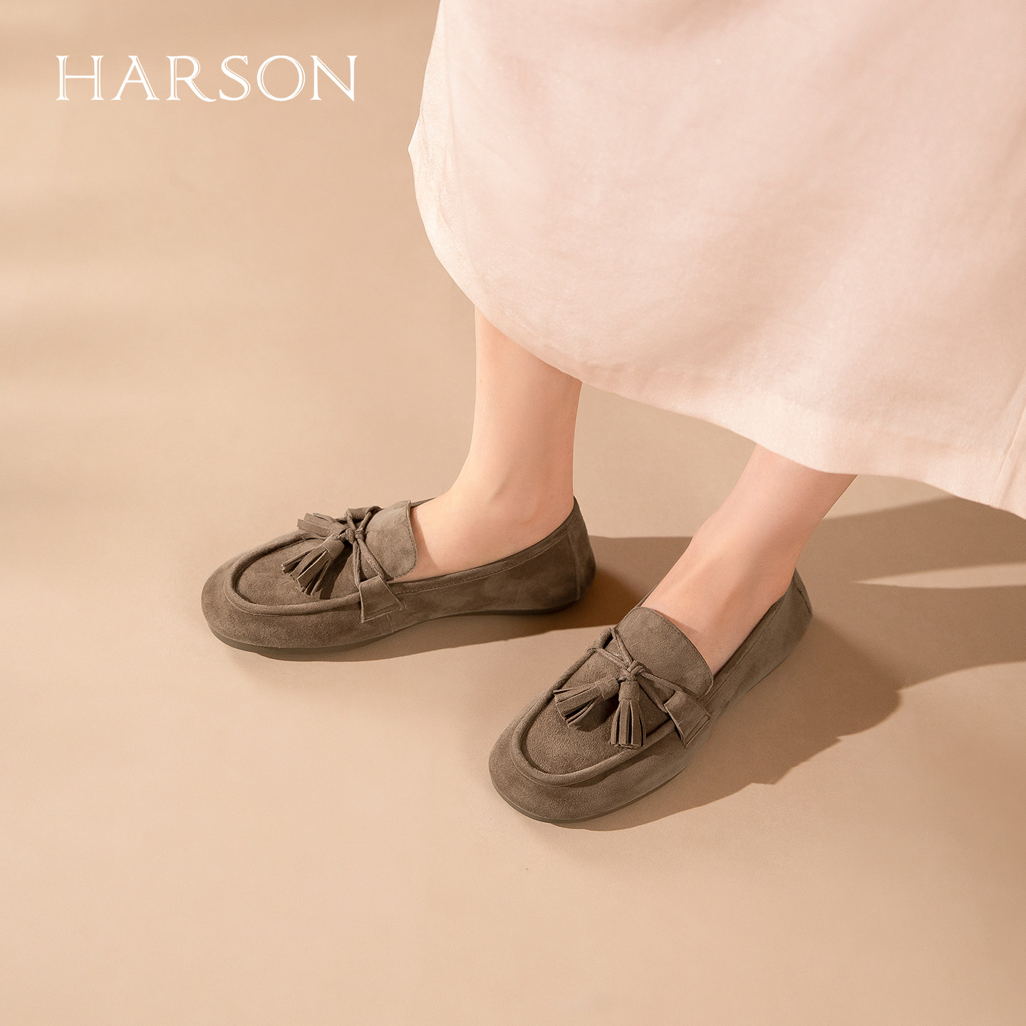 哈森复古流苏豆豆鞋乐福鞋女通勤休闲舒适单鞋2026新款HWS260155