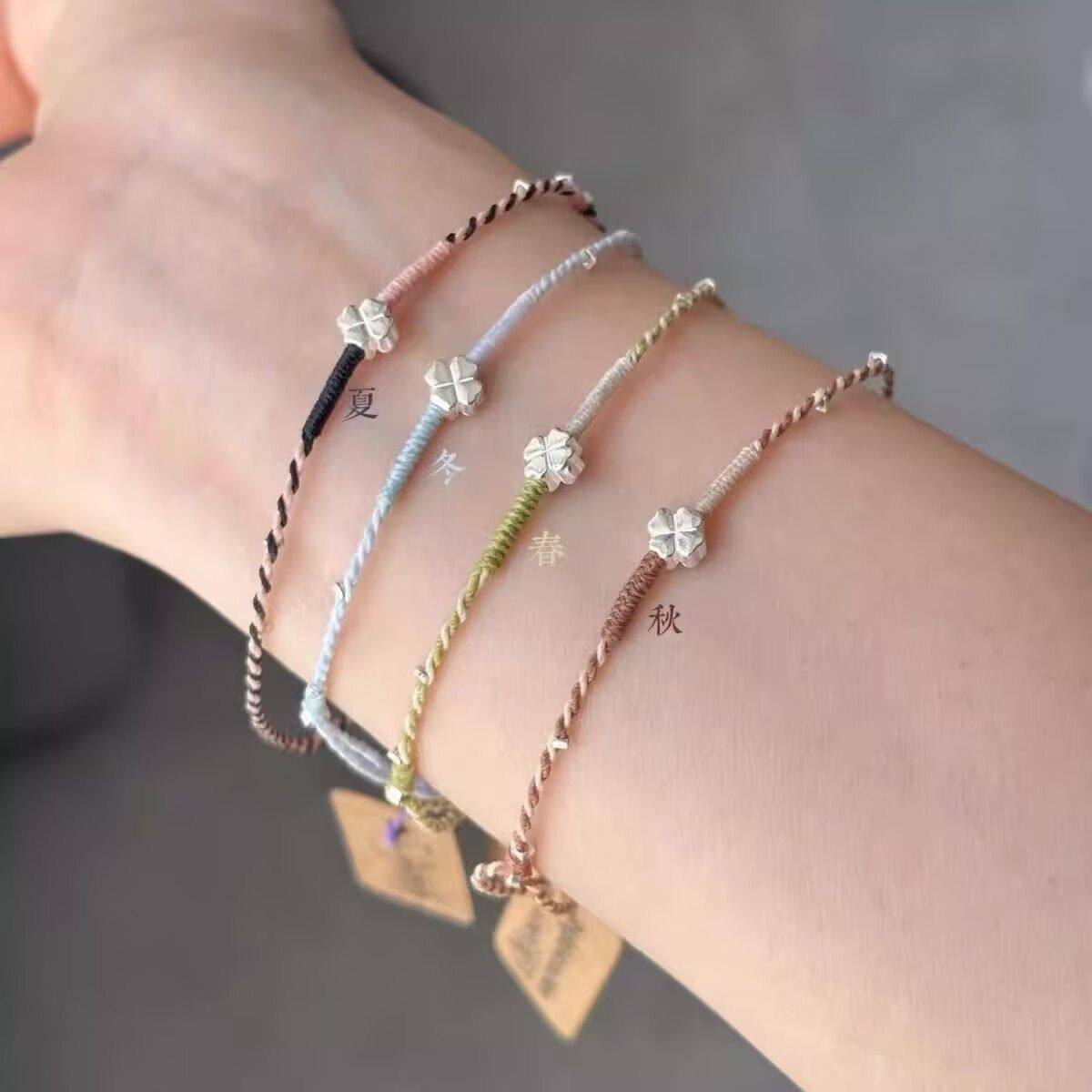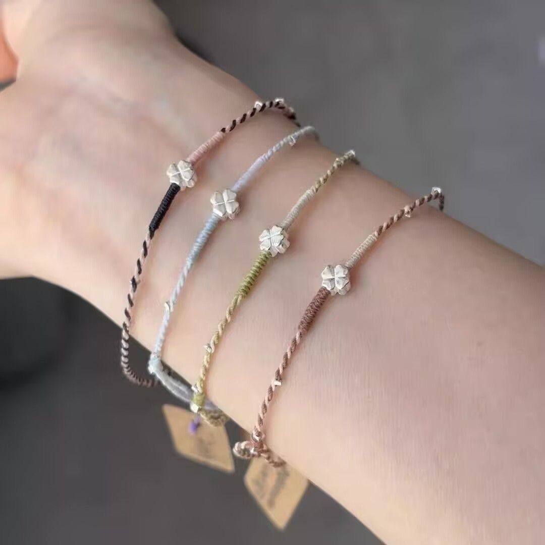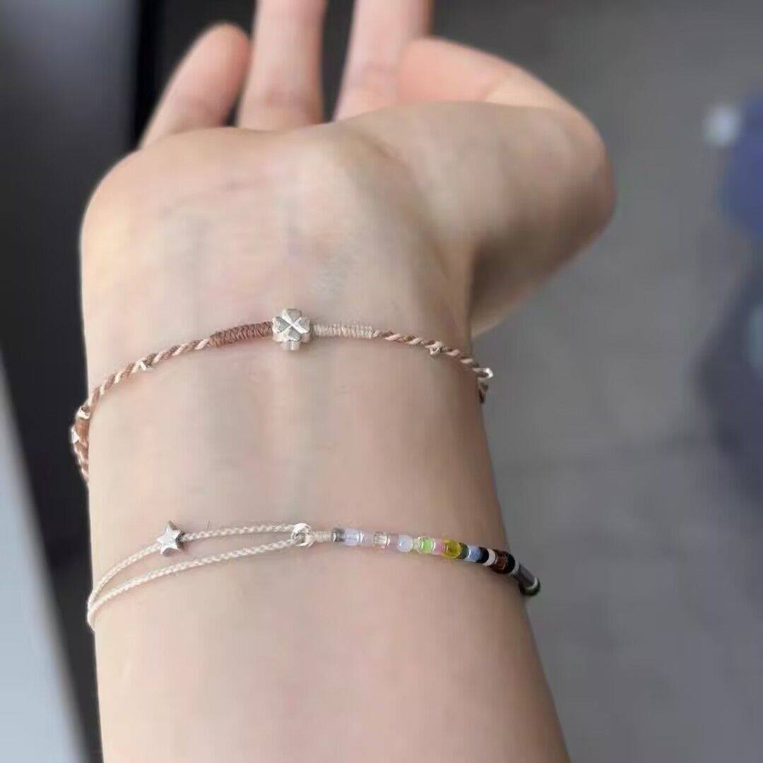 手工四叶草编织手绳新款小众幸运手链精致情侣幸运星闺蜜简约礼物