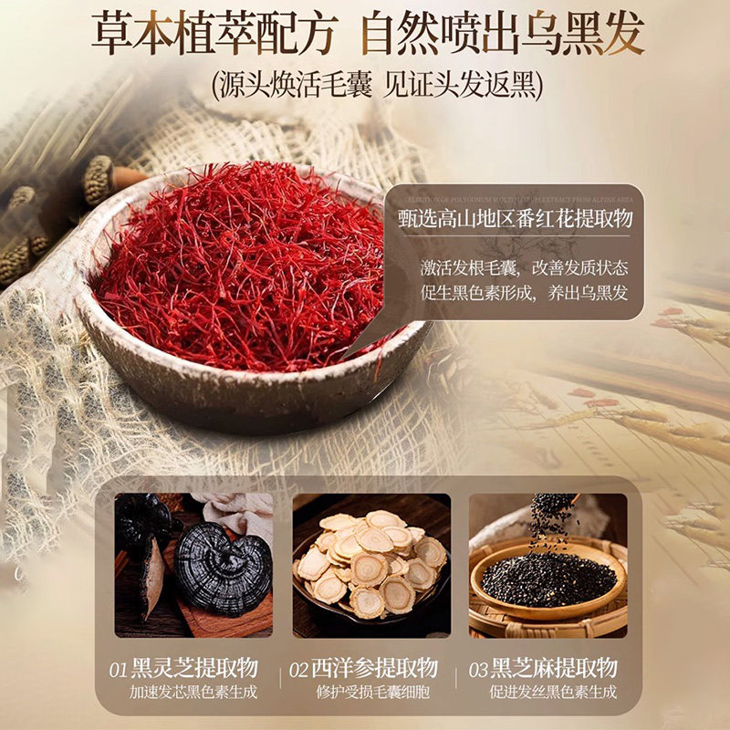 藏红花首乌养发精华液白养黑护发喷雾官方旗舰店人参黑发植萃草本