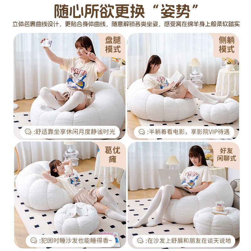 懒人沙发可躺可睡休闲椅子阳台榻榻米座椅卧室单人南瓜小沙发客厅