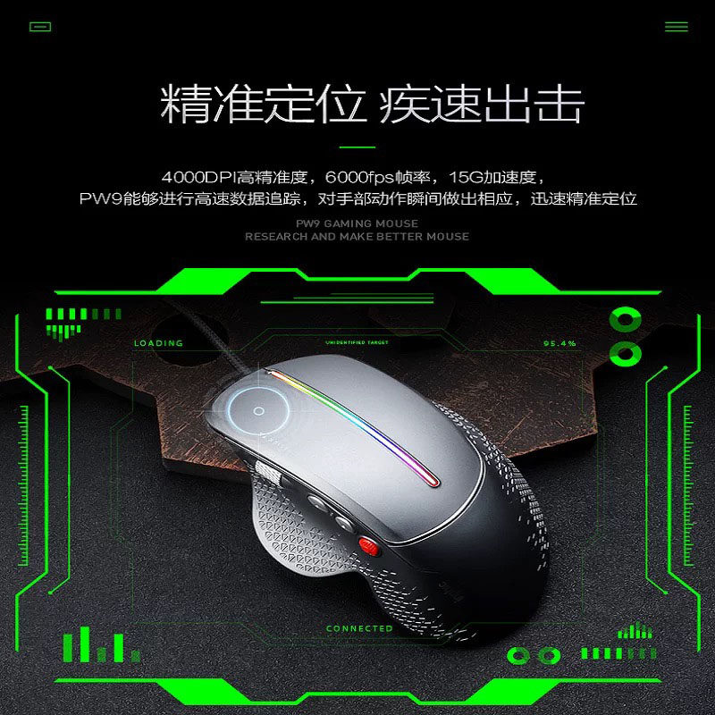英菲克PW1有线鼠标静音游戏电竞机械宏办公usb台式笔记本电脑专用