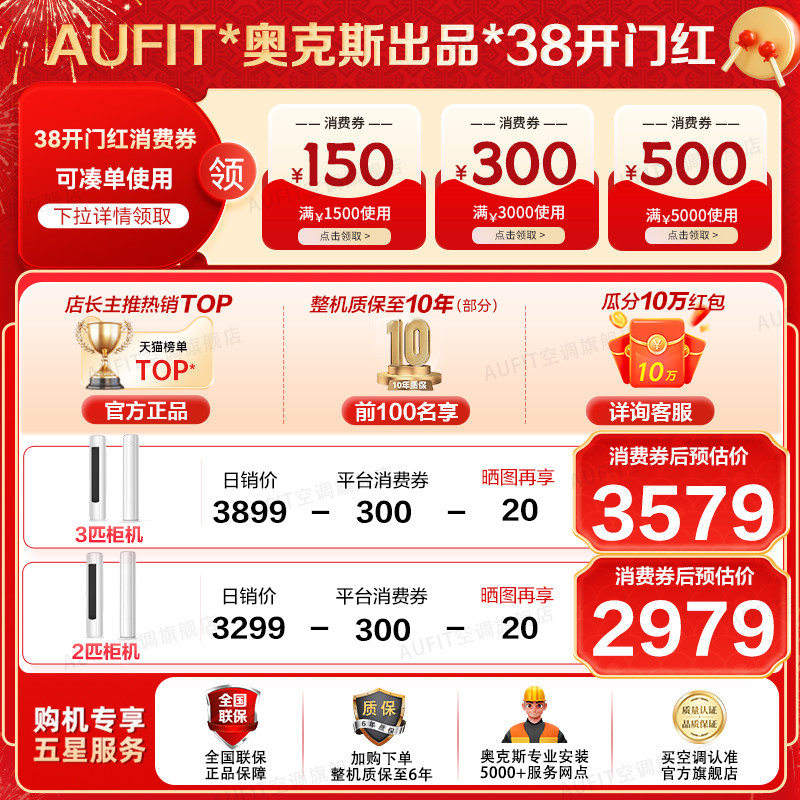 AUFIT空调奥克斯出品3匹立式家用一级能效变频冷暖2P省电柜机旗舰