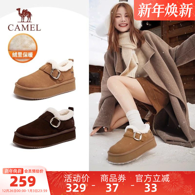 骆驼女鞋2025冬季新款厚底加绒保暖雪地靴毛毛鞋休闲勃肯鞋棉鞋女