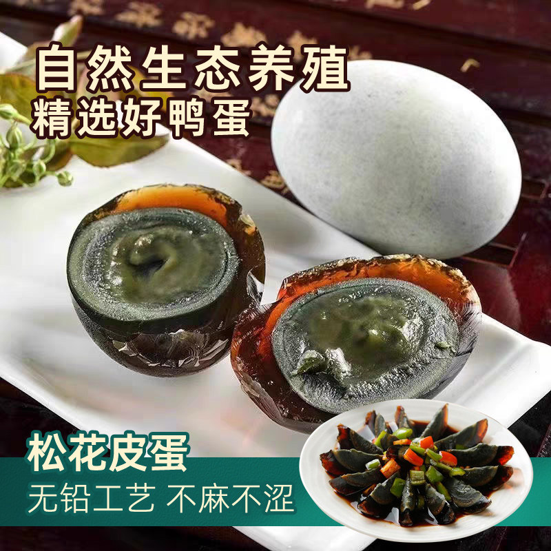 皮蛋无铅正宗湖北溏心松花蛋特大70g鸭变蛋官方旗舰店批发工艺