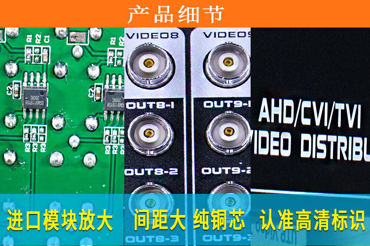 监控视频同轴高清BNC分配器16进32/48出分支器分屏器1分2模拟分路