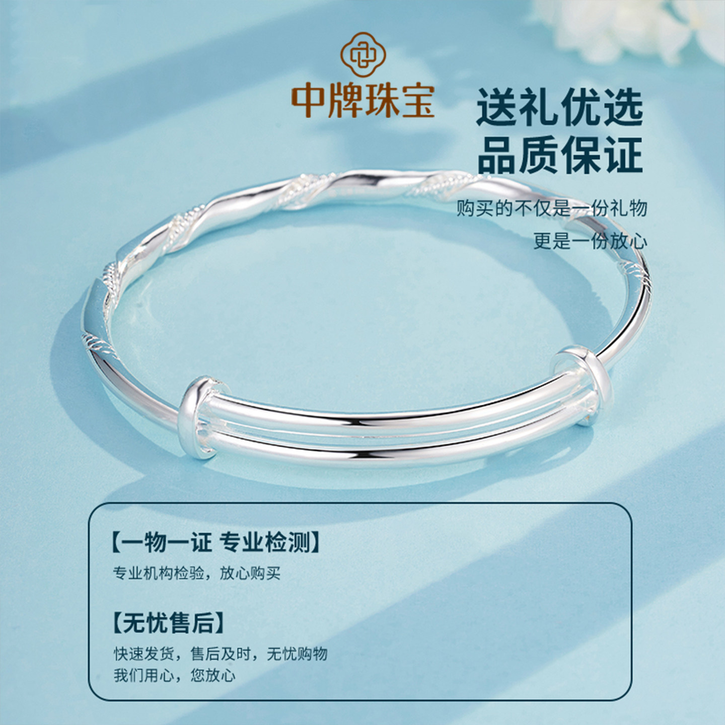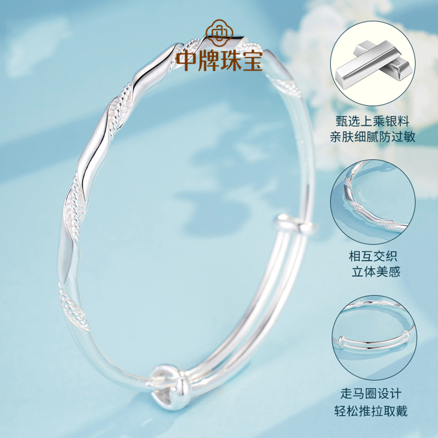 莫比乌斯银镯足银波浪纹可调节银手镯纯银镯子简约白银手饰银饰女