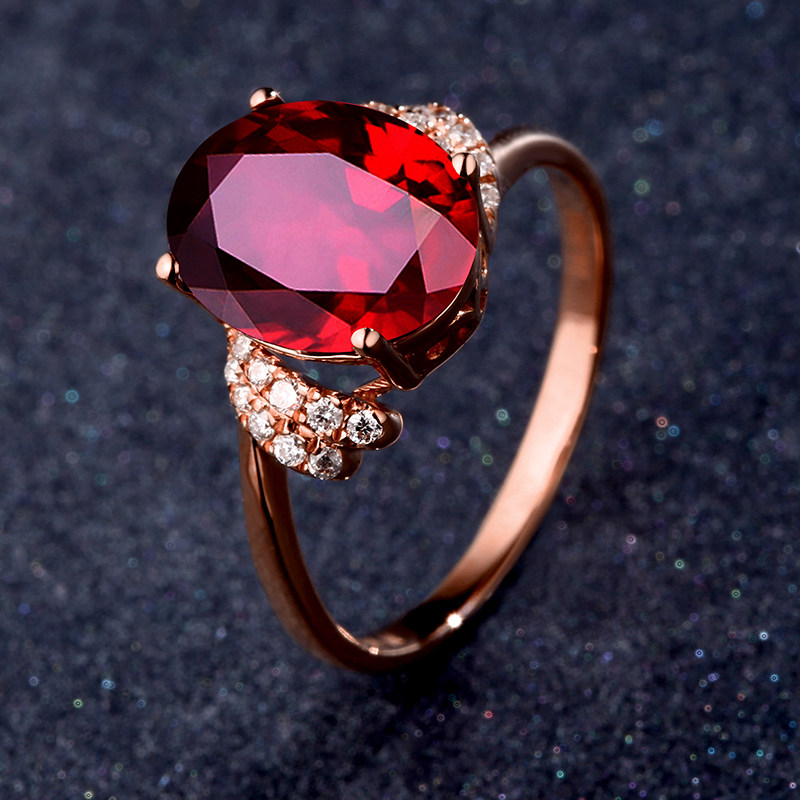 蜜安琪珠宝 0.61~1克拉天然红宝石戒指女 18k金彩色宝石镶嵌定制