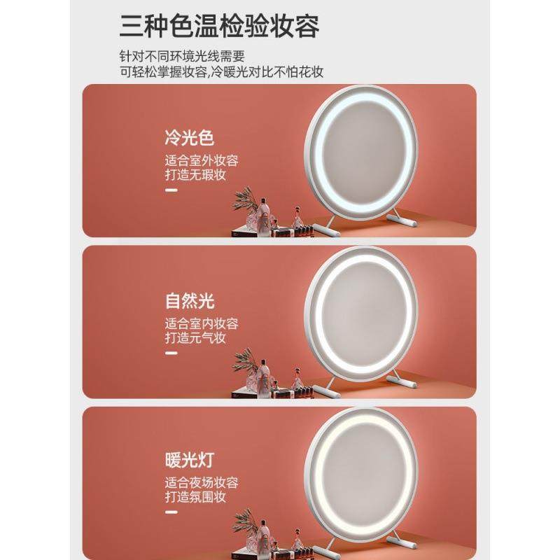 感应带灯化妆镜桌面台式LED网红拍照ins风家用卧室梳妆大号圆镜子