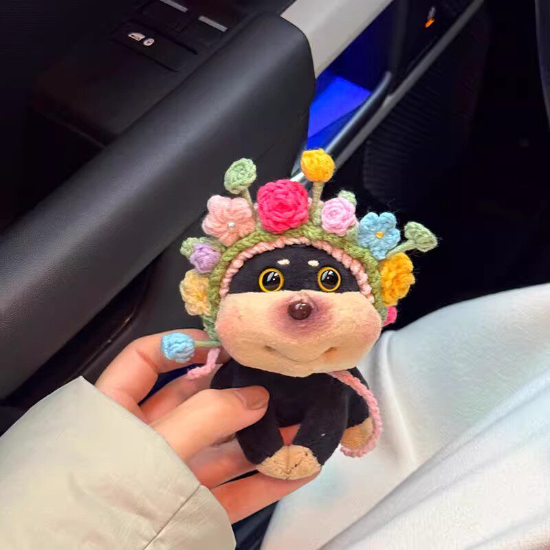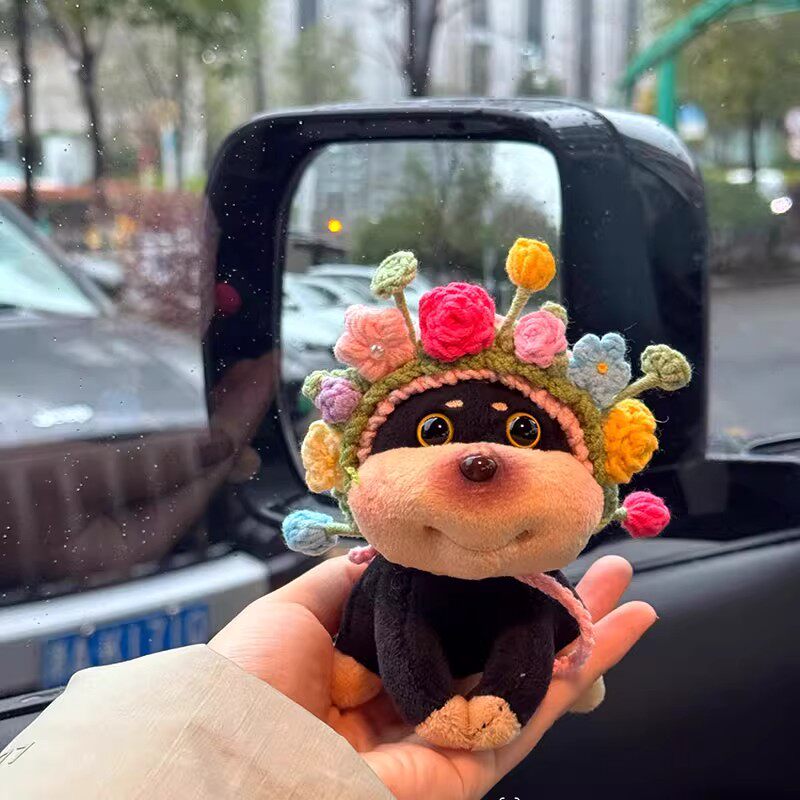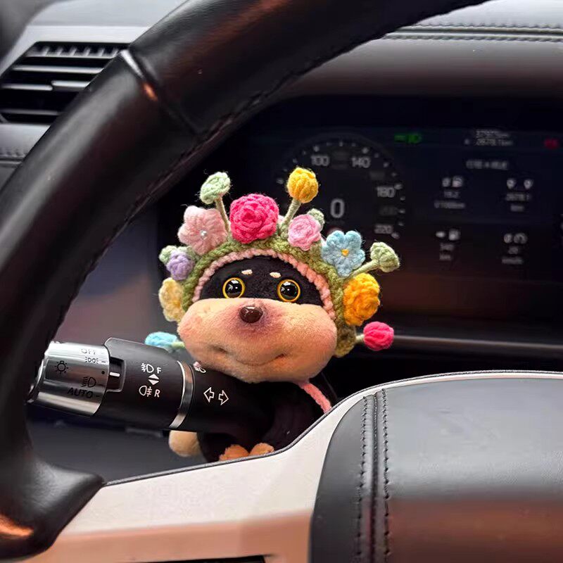 正版簪花蜜蜂狗毛绒公仔汽车怀挡转向灯雨刮器新车礼物车载玩偶萌