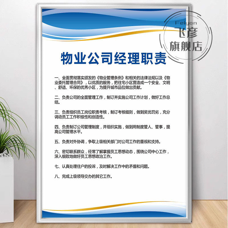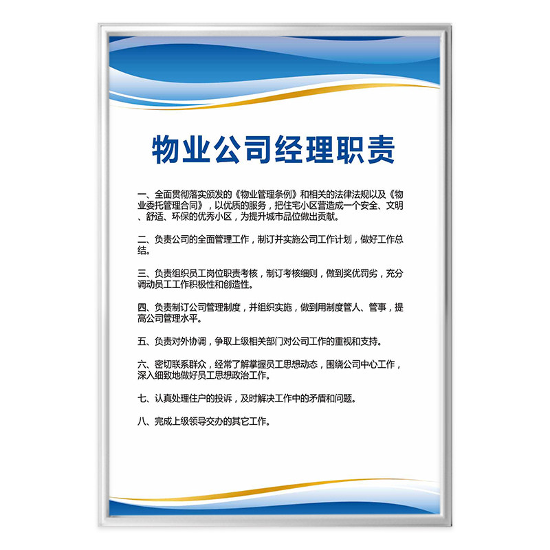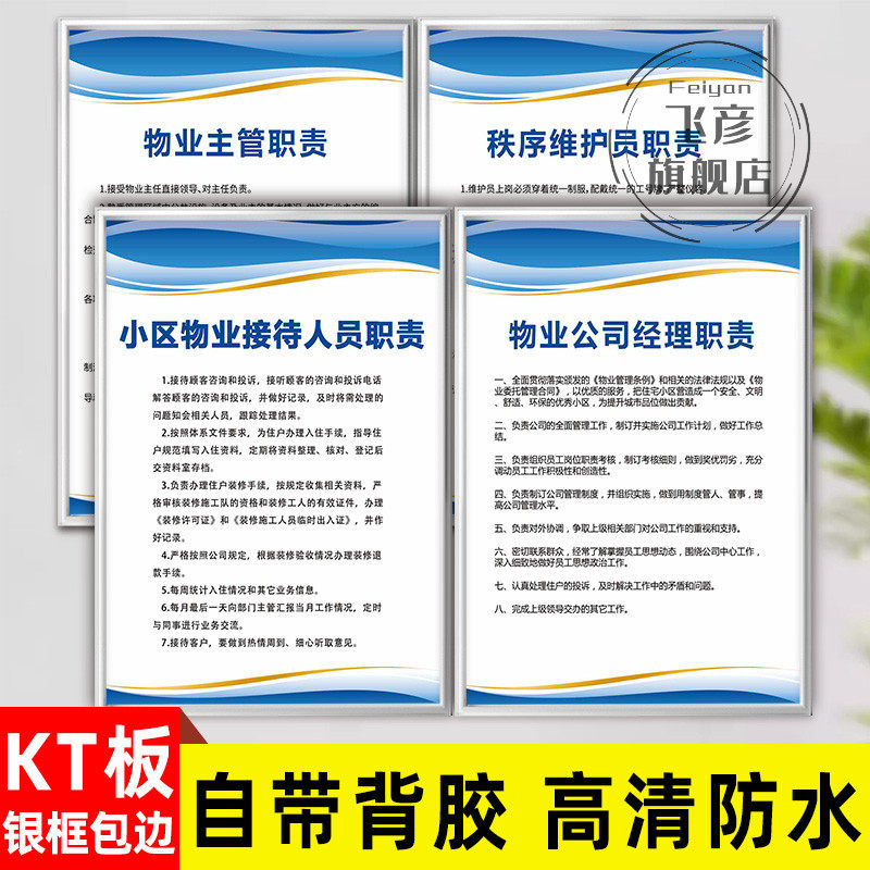 物业公司管理制度小区物业安保岗位职责牌公共场所卫生管理制度保洁员绿化工程部电梯机房上墙人员信息公示牌