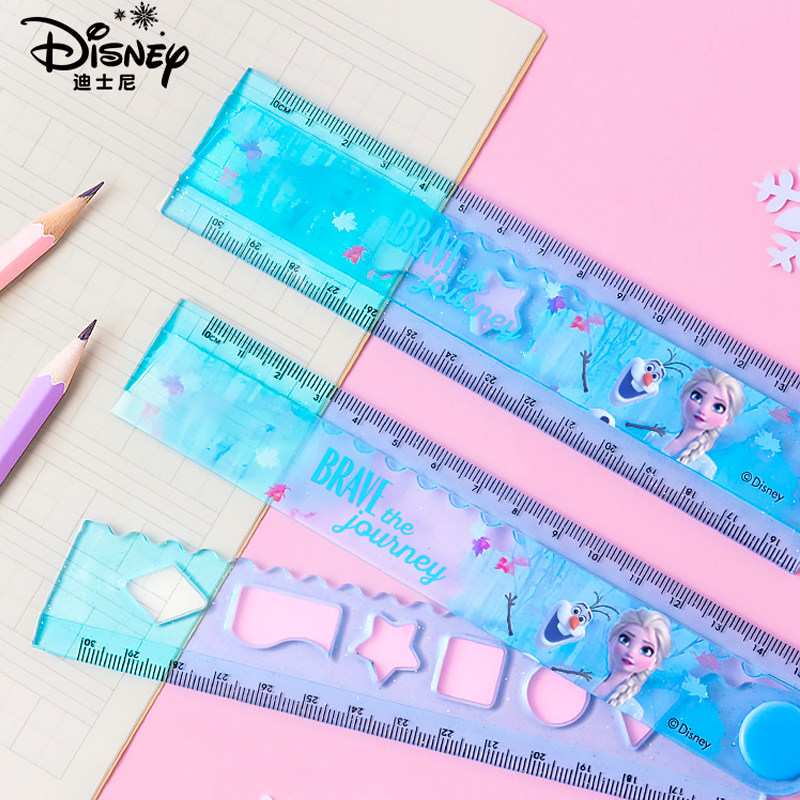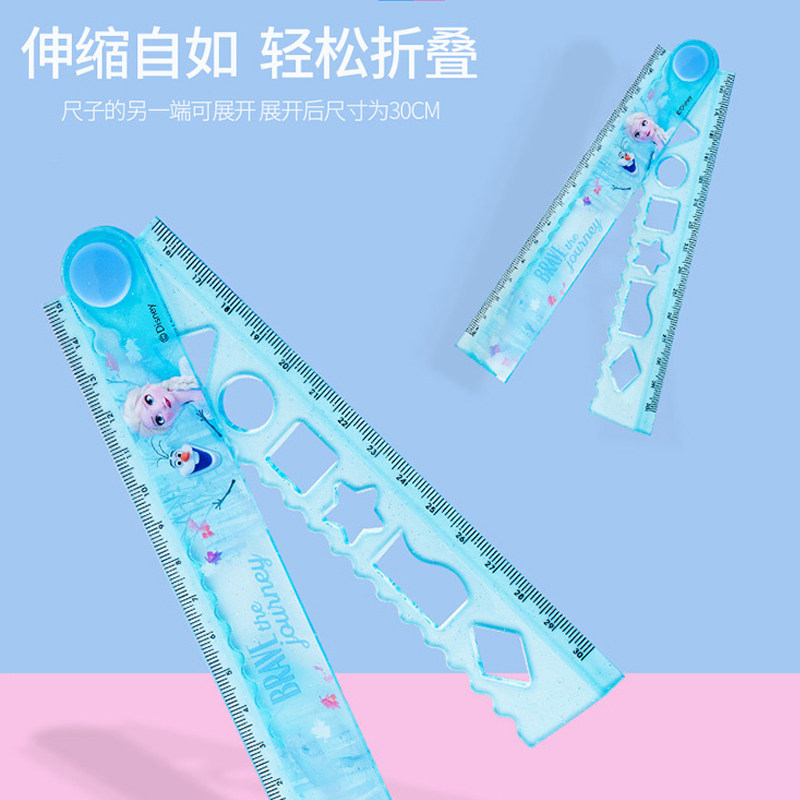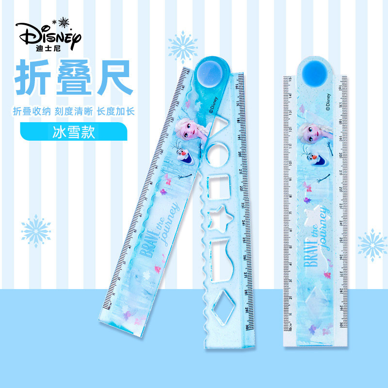 迪士尼文具尺子冰雪奇缘折叠尺波浪透明直尺公主塑料尺子儿童30cm