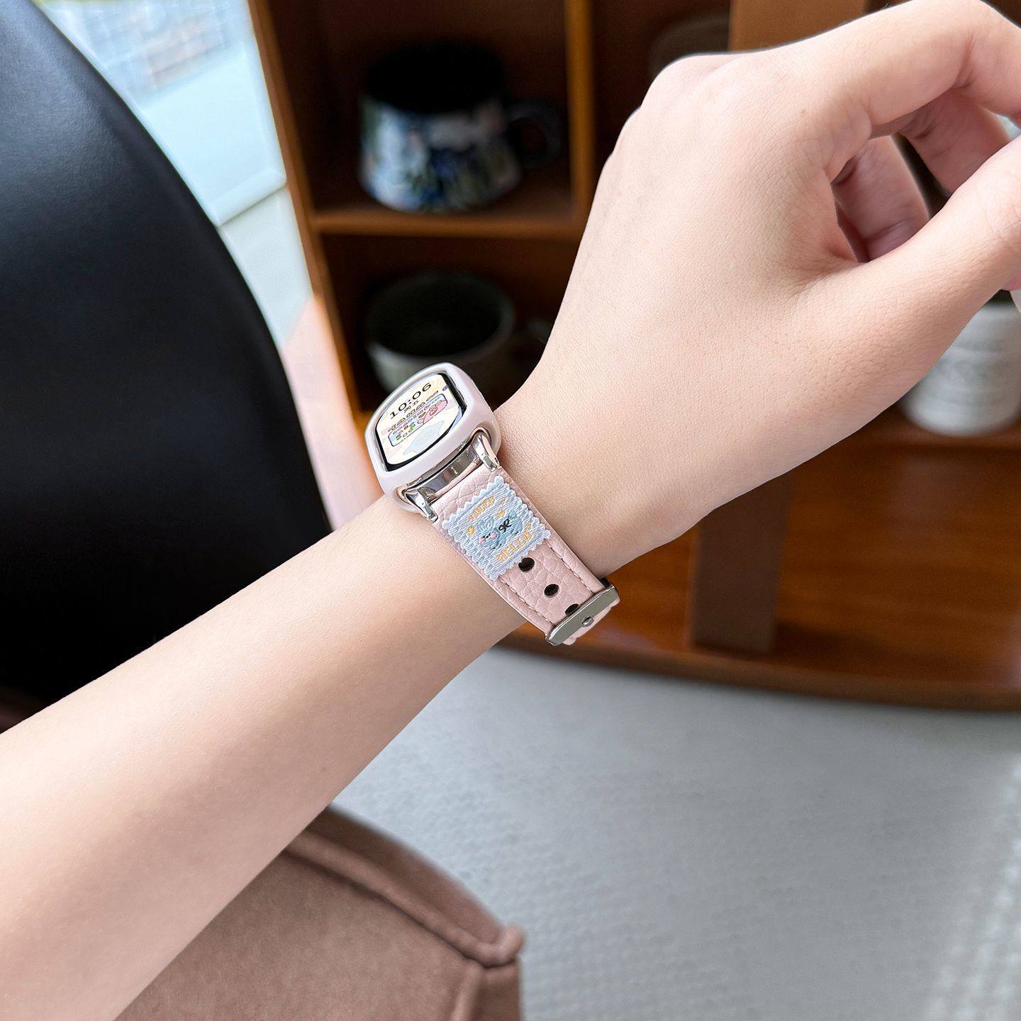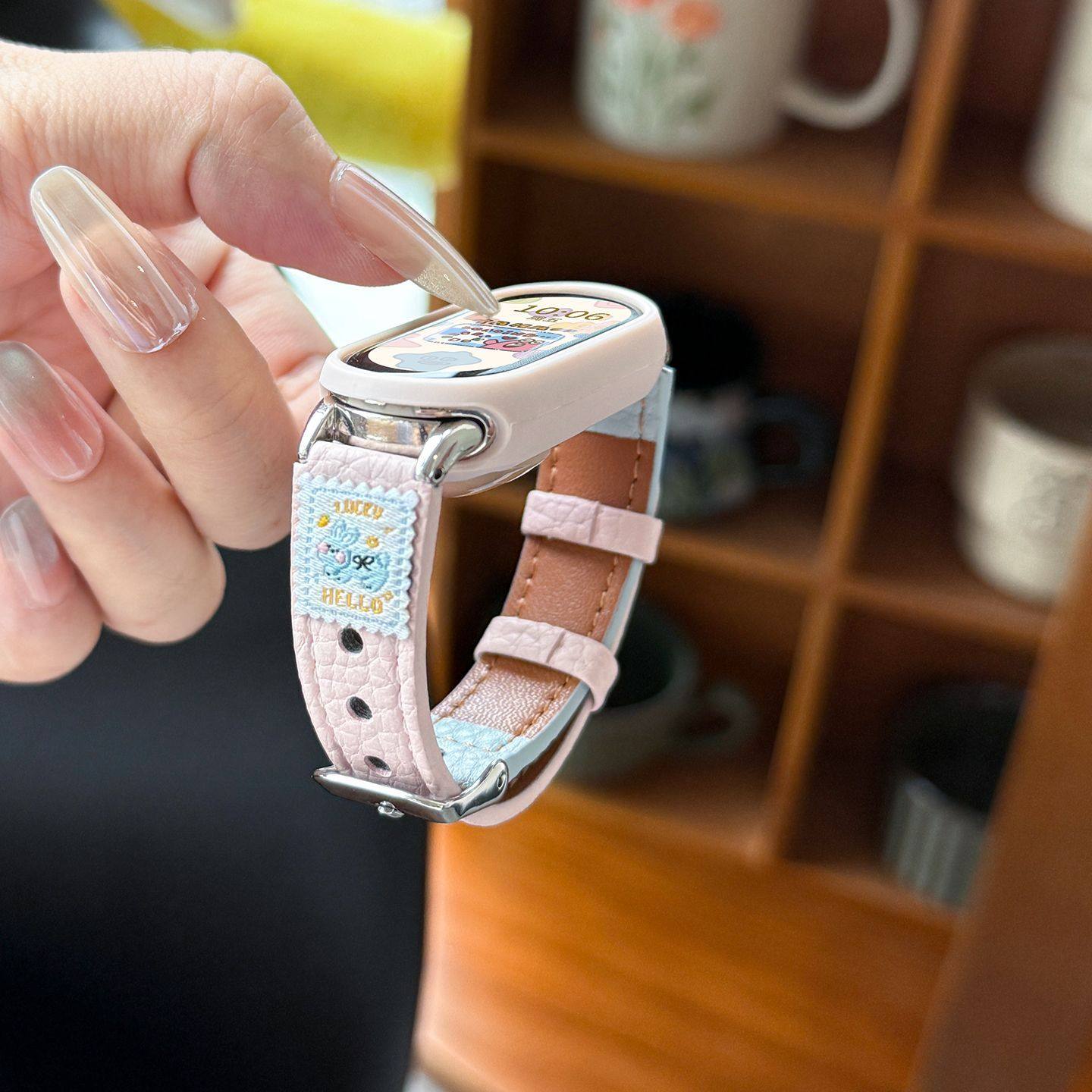适用小米手环10表带皮质荔枝纹撞色9轻奢时尚8替换陶瓷版针扣卡通布标通用氛围百搭舒适佩戴可自由调节