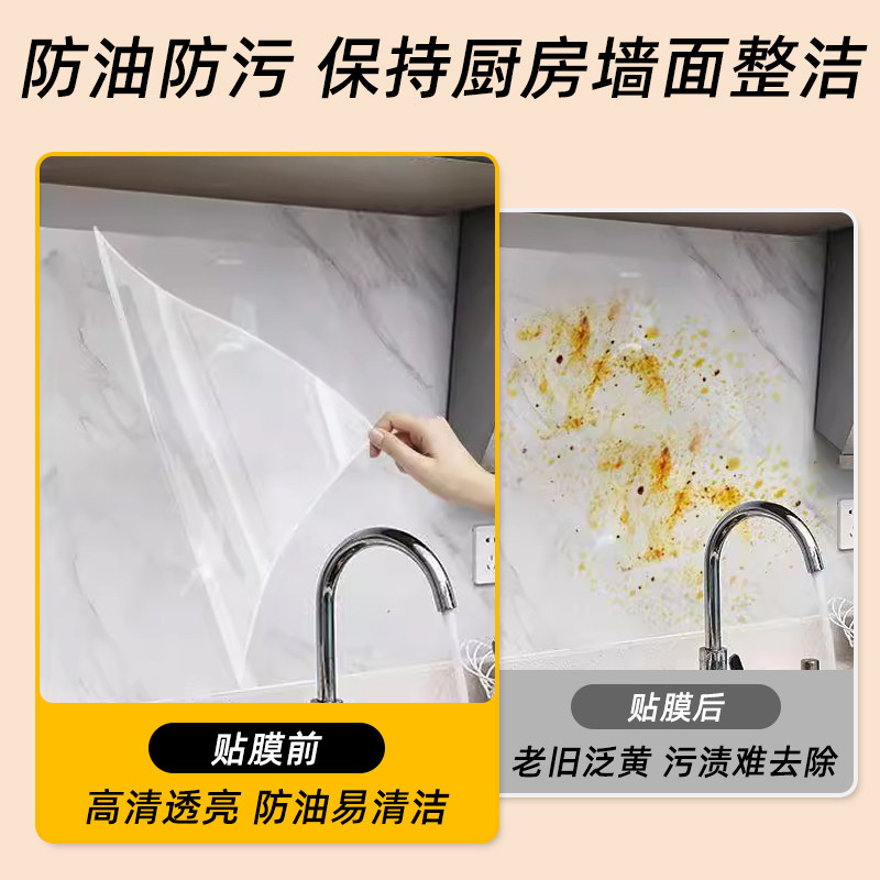厨房吊柜防油贴纸透明静电贴膜橱柜防水防潮柜子底部防蒸汽耐高温